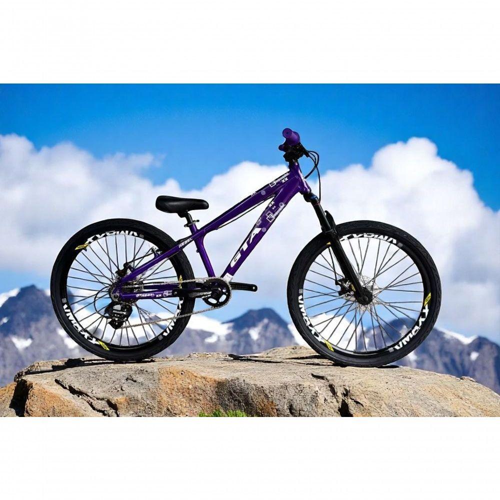 Bicicleta Aro 26 Gta Rebel Freeride Downhill Single 7v Rodas Vmaxx Freio A Disco Pneu Flame Preto Roxo