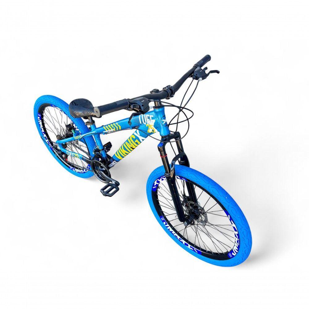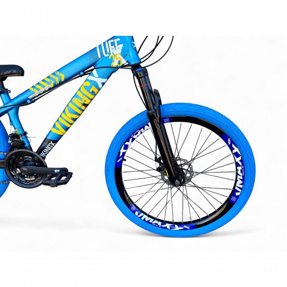 Bicicleta Aro 26 Vikingx Tuff Freio Hidráulico 21v Freeride Rodas Vmaxx Suspensão Pneu Flame Azul-preto X25