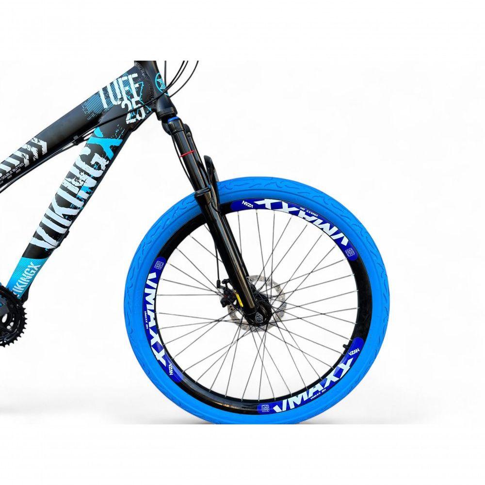 Bicicleta Aro 26 Vikingx Tuff Câmbios Shimano 21v Freeride Freio A Disco Aro Vmaxx Pneu Flame preto-Azul X25