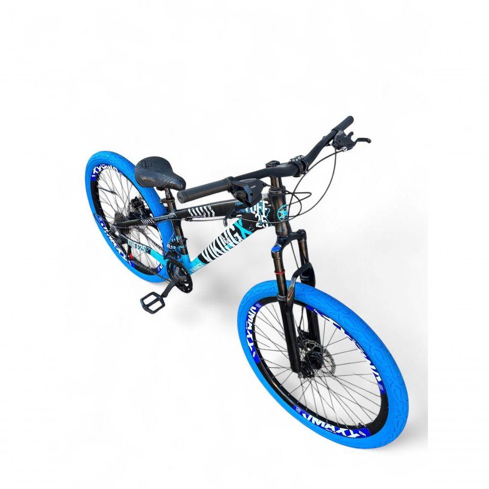 Bicicleta Aro 26 Vikingx Tuff Câmbios Shimano 21v Freeride Freio A Disco Aro Vmaxx Pneu Flame preto/Azul X25Bike aro 26, vikingx tuff, nova na caixa a pronta entrega, produto com ótima qualidade e acabamento, possui 21 marchas com sistema de alavancas rapid fire que a cada clique uma marcha é trocada, câmbios Shimano sistema de freio a disco, pneu flame. Segue abaixo características da bike:Quadro 26 VikingX Tuff em AlumínioGarfo suspensão aço pretoSuporte do guidão em alumínio pretoGuidão 31.8mm em alumínio pretoCanote do selim 27.2 em alumínio preto Sem carrinhoSelim GTA Freeride PretoAbraçadeira do Selim alumínio PretoAros Vmaxx DH Super reforçadosRaios PretosCubos PretosPneus 26x2.125 FlameMovimento central selado rolamentadoFreios a disco mecânico com discos inox 160mmAlavancas Semi-automáticas Rapid FireCâmbio Traseiro Shimano TZCâmbio Dianteiro Shimano TZCorrente IndexPedivela Aço RevestidoPedal Plataforma Nylon pretoRoda Livre 7v indexBicicleta pré montada, vai precisar apenas fixar a roda dianteira, guidão, selim e pedais. Recomendamos que seja feita uma revisão por um técnico após a recebimento do produto, para reajuste e regulagem, pois no transporte pode acontecer de alguma peça soltar ou desregularFotos meramente ilustrativas