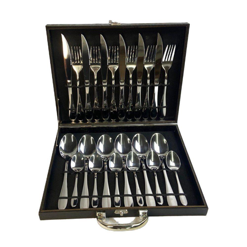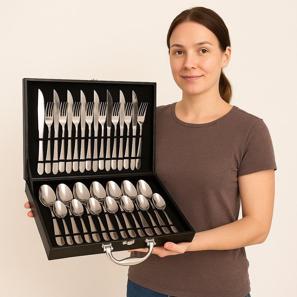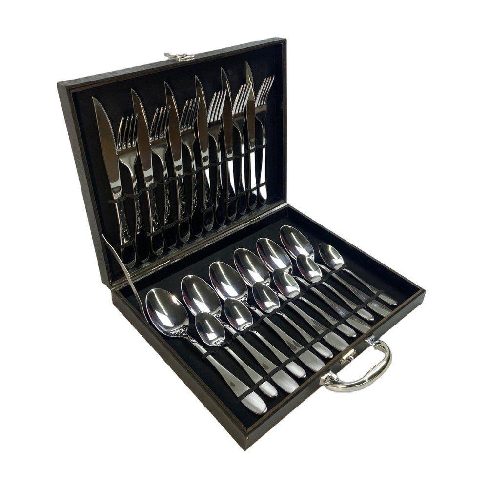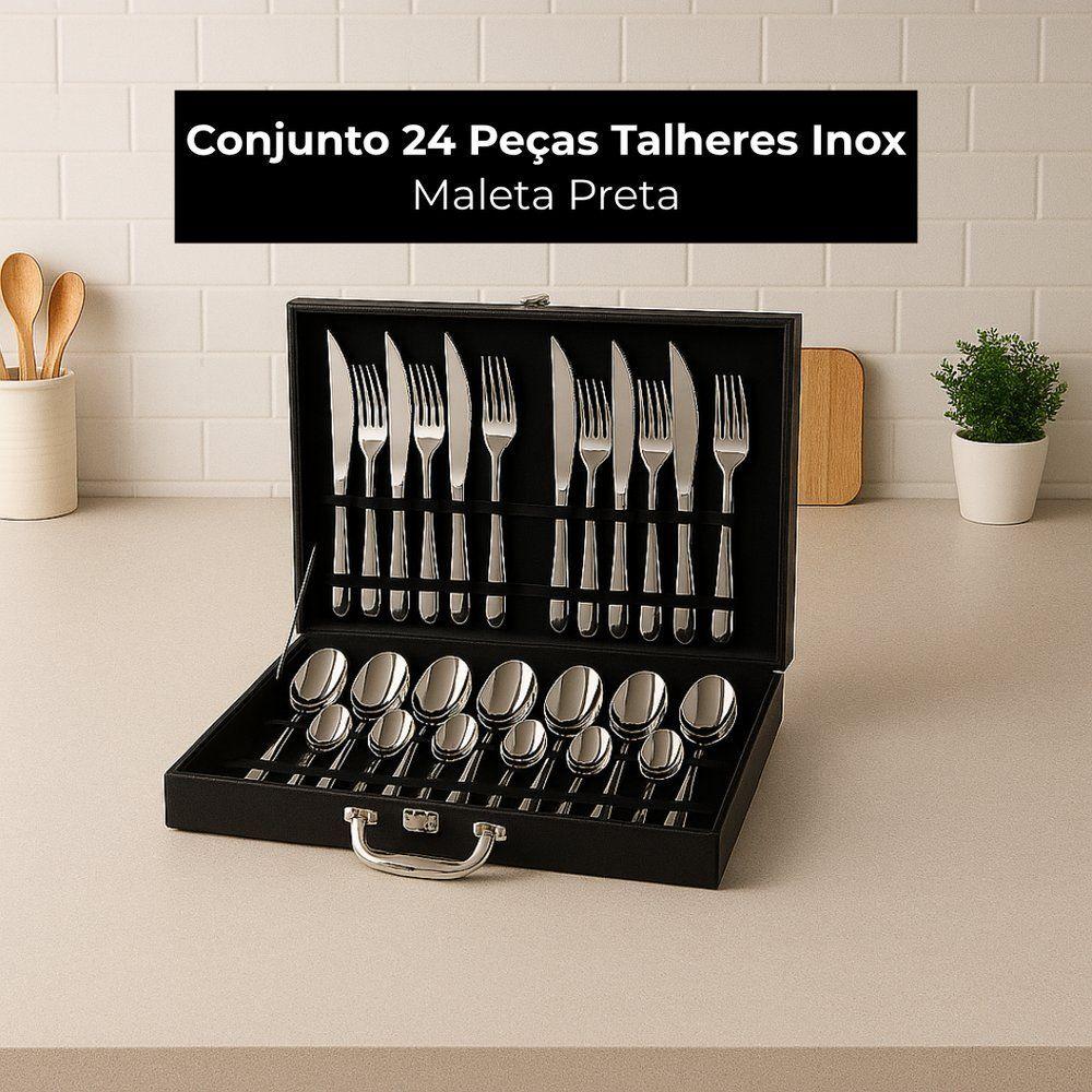 Faqueiro Inox 24 Peças Com Maleta Preta Talheres Presente Casamento