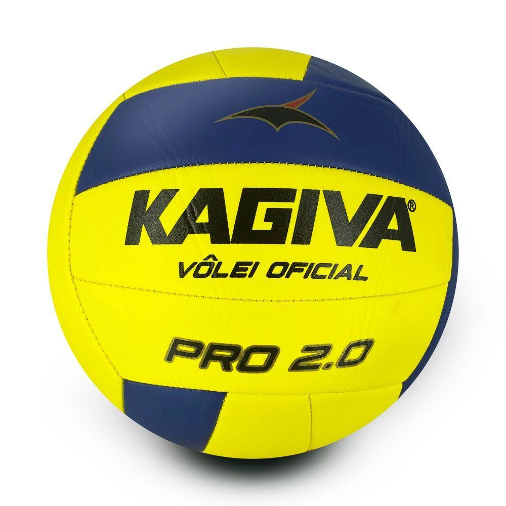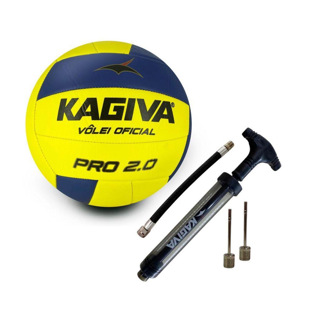 Kit Bola De Vôlei Kagiva 2.0 Pro Costurada + Bomba De Ar Kagiva Dupla Ação Amarelo + Preto Tamanho Único Genêro Homem