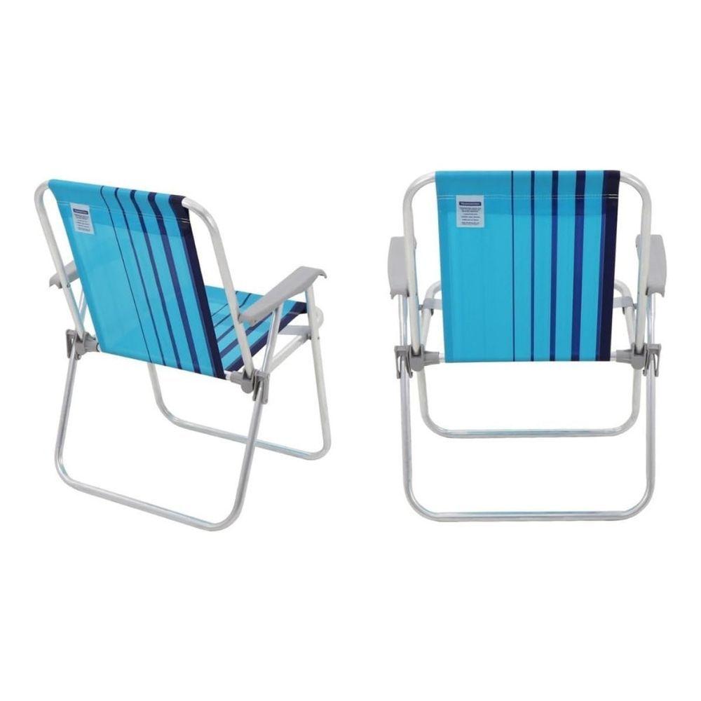 Cadeira De Praia Tramontina Samoa Alta Em Alumínio Com Assento Azul