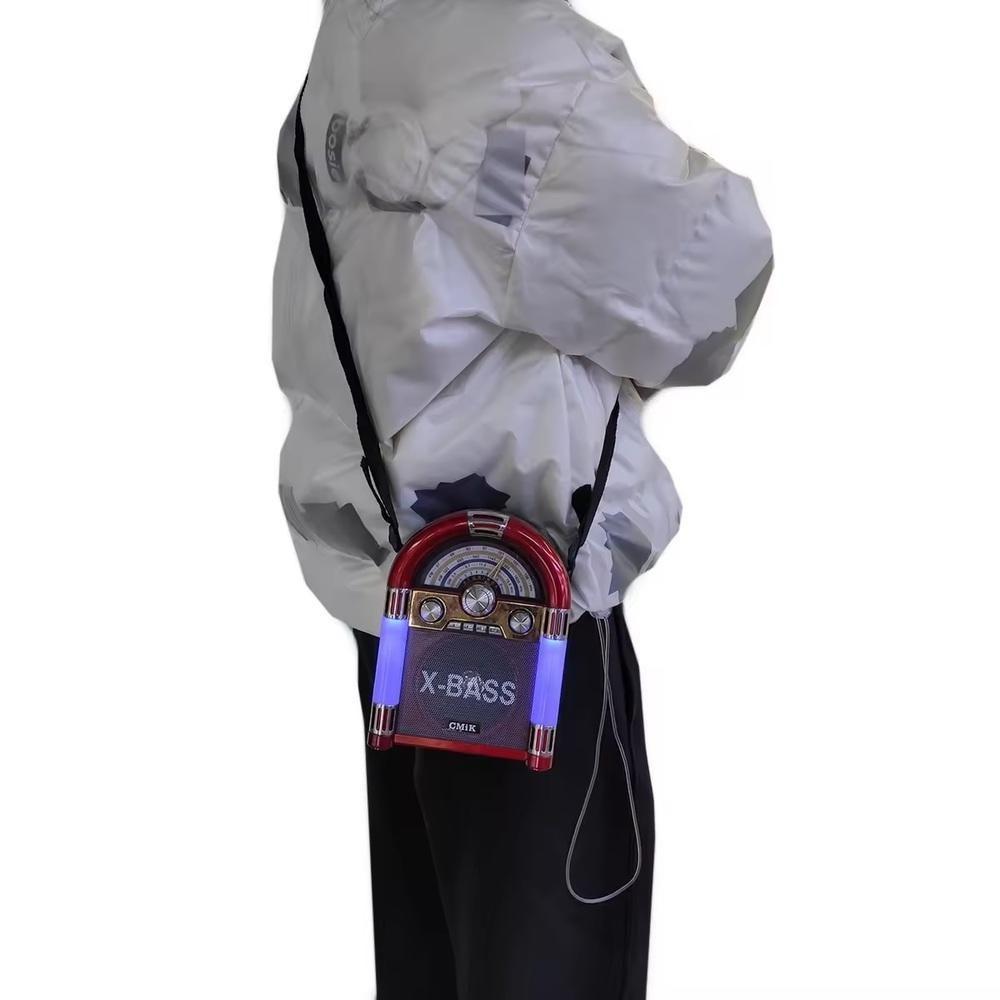 Mini Jukebox Radio Retro Bluetooth Am Fm Usb Sd Radio Mp3 Led Estilo Madeira Mdf Vintage Recarregavel BivoltCaixa de Som Portátil Sem Fios CMIK - MK166BTLeve sua música para qualquer lugar com a caixa de som portátil sem fios CMIK - MK166BT! Com um design retrô e funcionalidades modernas, essa caixa de som é perfeita para quem busca praticidade e estilo. Compacta, leve, e equipada com uma alça ajustável, ela é fácil de transportar, ideal para qualquer ocasião.Características Principais:Design Retrô e Moderno: Estilo vintage com um toque de modernidade, incluindo luzes LED no visor e nas laterais.Conectividade: Conexão Bluetooth, entradas USB, microSD, SD, e auxiliar, permitindo diversas formas de reprodução de música.Rádio AM/FM: Sintonize suas estações de rádio favoritas em qualquer lugar, com excelente qualidade de sinal graças à sua antena integrada.Reprodução de MP3: Ouça suas músicas em formato MP3 a uma distância de até 10 metros.Portabilidade: Alimentação por bateria recarregável interna ou por 4 pilhas LR14 (não incluídas), além de um cabo de alimentação AC/DC.Especificações Técnicas: Fonte de Alimentação: AC 110-220V / 60-50Hz, DC 6V, 4 baterias LR14 (não incluídas).Conexões: Bluetooth, portas USB, microSD, SD, Auxiliar, C7, DC (ponta da agulha).Potência: 15W RMS.Frequências: FM 87-108MHz, AM 522-1650KHz, SW Dimensões: 20 x 14,5 x 9 cm.Conteúdo da Embalagem:01 Caixa de Som Portátil Sem Fios CMIK - MK166BT.01 Cabo de Alimentação.Destaques:Bateria interna recarregável.Funciona também com pilhas.Luzes LED com efeito visual autêntico.Alça ajustável inclusa para fácil .: Disponível nas cores vermelho e prata, enviadas conforme o estoque disponível, sem possibilidade de escolha.Caixa de Som Portátil Sem Fios CMIK - MK166BTLeve sua música para qualquer lugar com a caixa de som portátil sem fios CMIK - MK166BT! Com um design retrô e funcionalidades modernas, essa caixa de som é perfeita para quem busca praticidade e estilo. Compacta, leve, e equipada com uma alça ajustável, ela é fácil de transportar, ideal para qualquer ocasião.Características Principais:Design Retrô e Moderno: Estilo vintage com um toque de modernidade, incluindo luzes LED no visor e nas laterais.Conectividade: Conexão Bluetooth, entradas USB, microSD, SD, e auxiliar, permitindo diversas formas de reprodução de música.Rádio AM/FM: Sintonize suas estações de rádio favoritas em qualquer lugar, com excelente qualidade de sinal graças à sua antena integrada.Reprodução de MP3: Ouça suas músicas em formato MP3 a uma distância de até 10 metros.Portabilidade: Alimentação por bateria recarregável interna ou por 4 pilhas LR14 (não incluídas), além de um cabo de alimentação AC/DC.Especificações Técnicas: Fonte de Alimentação: AC 110-220V / 60-50Hz, DC 6V, 4 baterias LR14 (não incluídas).Conexões: Bluetooth, portas USB, microSD, SD, Auxiliar, C7, DC (ponta da agulha).Potência: 15W RMS.Frequências: FM 87-108MHz, AM 522-1650KHz, SW Dimensões: 20 x 14,5 x 9 cm.Conteúdo da Embalagem:01 Caixa de Som Portátil Sem Fios CMIK - MK166BT.01 Cabo de Alimentação.Destaques:Bateria interna recarregável.Funciona também com pilhas.Luzes LED com efeito visual autêntico.Alça ajustável inclusa para fácil .: Disponível nas cores vermelho e prata, enviadas conforme o estoque disponível, sem possibilidade de escolha.