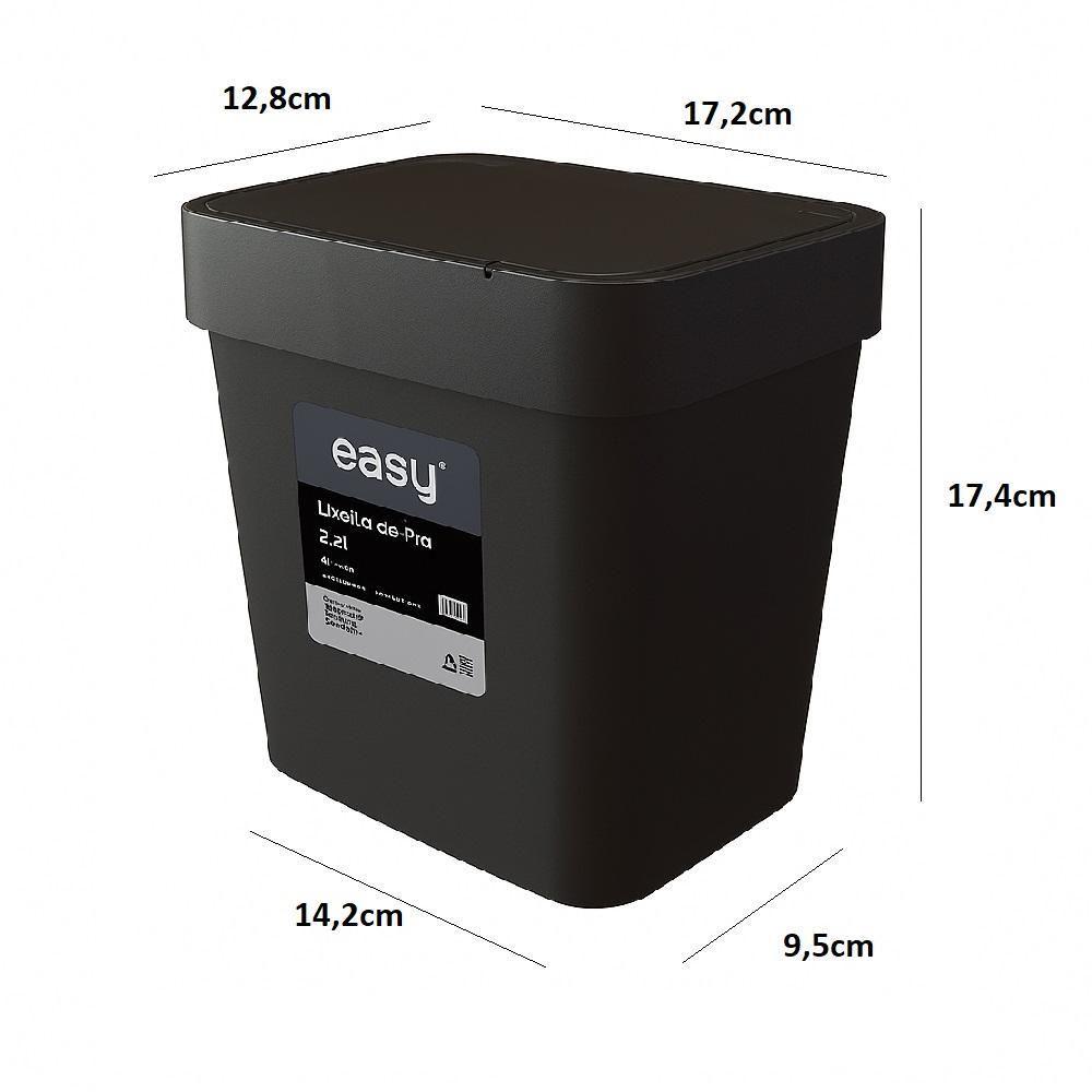 Lixeira Pia Cozinha Preta Cesto De Lixo 2,5l Tampa Multiuso Casa Bancada Consultorio Compacta Ecologica