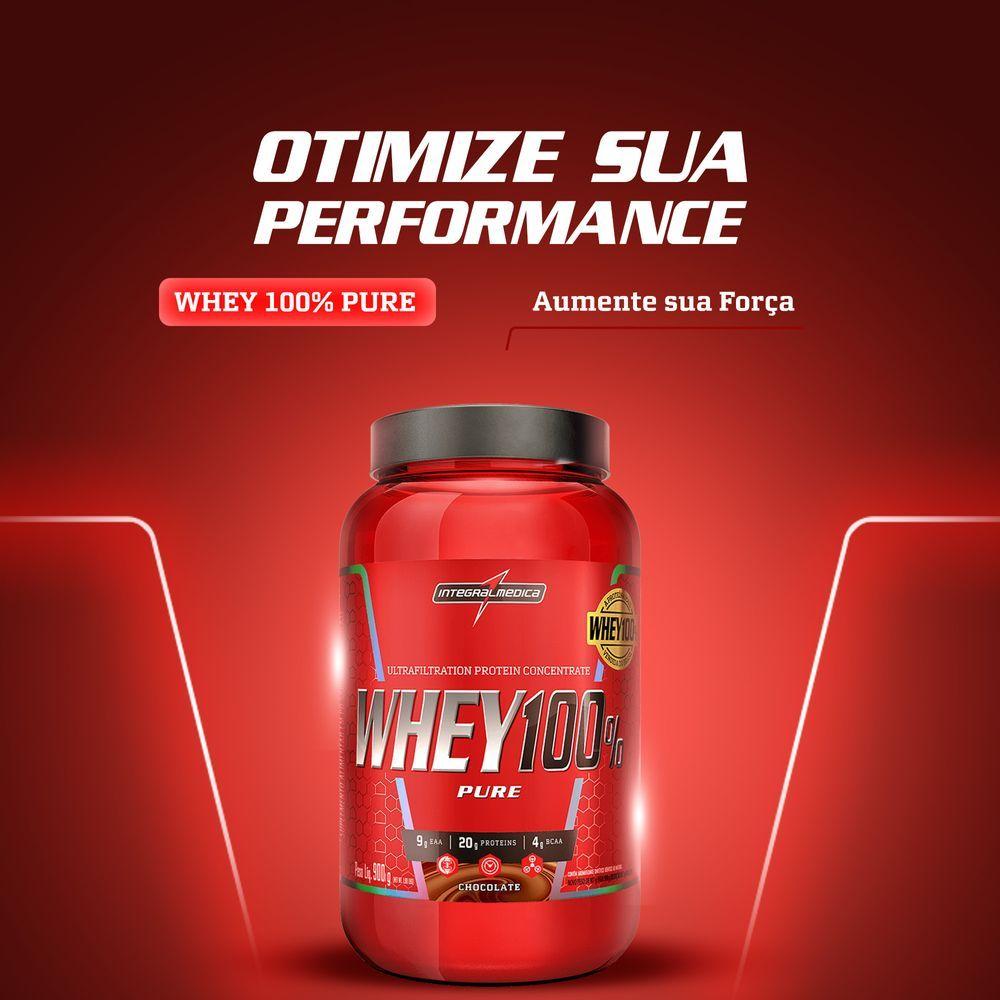 Whey 100% Pure 900g Integralmedica ChocolateO Whey 100% Pure é o suplemento ideal e essencial para quem busca ganho de massa magra e recuperação muscular. Composto pela proteína concentrada do soro de leite, são 21 g de proteína por dose, 9,7 g de aminoácidos essenciais e 4,6 g de BCAA. Uma ótima opção para o pós treino, o Whey 100% Pure auxilia na manutenção da massa magra, possui baixo teor de carboidrato, gordura e sódio. Zero Glúten. Alta qualidade para a sua suplementação, o Whey 100% Pure Integralmédica contém matéria-prima importada, e ótima absorção pelo organismo, evitando a sensação de inchaço após o consumo. A proteína do soro é a fonte mais nobre de proteína do leite com alto valor biológico, isso devido a sua alta concentração de aminoácidos essenciais e aminoácidos de cadeia ramificada (BCAA), esses aminoácidos têm papel fundamental na síntese de proteínas e construção muscular. Whey 100% Pure Integralmédica está disponível em 6 sabores, versões pote de 900g, pote de 450g, Pouch de 900g e Pouch de 1,8kg.Contém Glúten?: Não Contém | Lactose: Contém | Sabor: Chocolate Maltado | Tipo de Suplemento: Pote | Tamanho: 900 g | Formato do Suplemento: Pó | Classe de suplemento: Whey Protein | Função do suplemento: Proteina | Marca: Integralmedica | Código de registro sanitário da Anvisa: 540/22 | Sabor: Chocolate