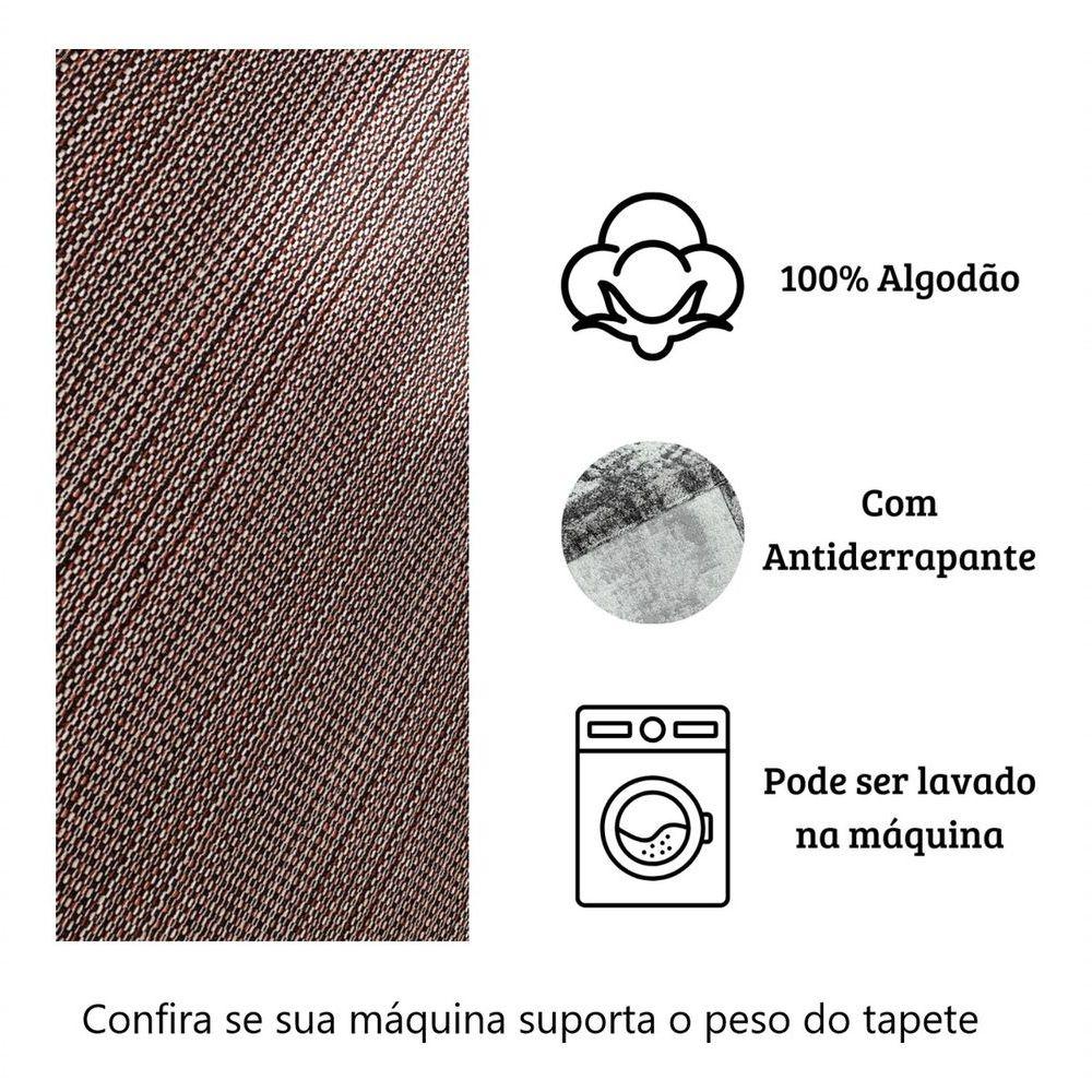 Tapete Sala Quarto Lavavel Luxo Antiderrapante 140x200 Marrom CipóO Tapete Viesto em Algodão é a escolha perfeita para quem busca elegância e funcionalidade na decoração da sala. Com um design sofisticado em marrom, este tapete não apenas embeleza o ambiente, mas também oferece segurança com sua superfície antiderrapante, ideal para famílias com crianças e animais de estimação.Feito 100% em algodão, o tapete é lavável à máquina, facilitando a manutenção e garantindo que seu espaço esteja sempre limpo e acolhedor. Sua textura macia proporciona conforto, tornando-o um local ideal para relaxar ou receber amigos e familiares.Recomendado especialmente para salas, o Tapete Viesto combina com diversos estilos de decoração, desde o contemporâneo até o rústico. Transforme seu espaço com um toque de classe e praticidade, sem abrir mão da qualidade e do conforto que você merece.Garantia do vendedor: 30 diasMedidas 140 cm largura 200 cm comprimentoBase antiderrapante100% algodão ;NacionalConsulte se a sua máquina suporta o peso do tapete molhado;