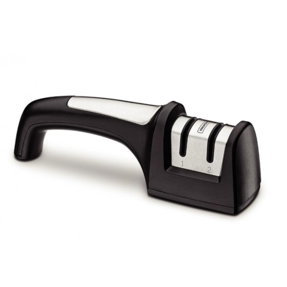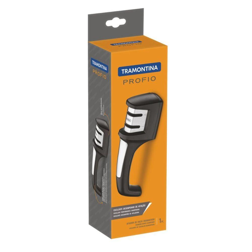 Afiador De Facas Profio Preto 24031000Afiador De Facas Profio Preto 24031000Benefícios do Produto1. Discos diamantados de alta capacidade de afiação e durabilidade, permite afiação em dois sentidos.2. Duas opções de afiação: Desbaste e Acabamento. Recupera o fio com rapidez e precisão.3. Suporte em ABS com detalhes em aço inoxidável que conferemestilo e resistência.4. Cabo com design ergonômico que oferece maior conforto e segurança.5. Base antideslizante.6. Design moderno e diferenciado.7. Excelente desempenho de afiação.8. Seguindo as instruções de uso, o afiador permanecerá bonito por muito mais tempo.Orientações GeraisUso seguro e adequado:Não utilize o afiador para afiar lâminas serrilhadas ou tesouras. Para evitar danos à faca, afie-a empregando uma suave pressão. Por estar associado ao uso de facas, mantenha o afiador fora do alcance de crianças.7891112125605
