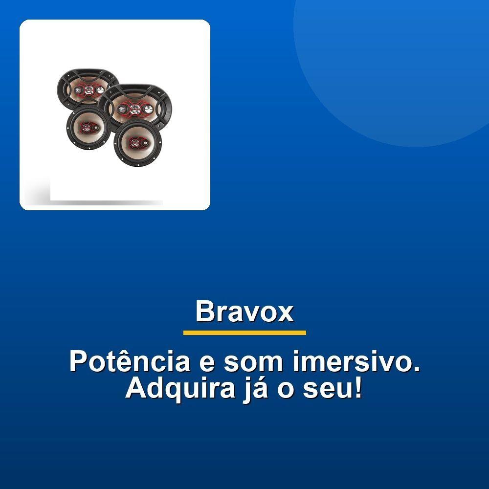 Alto Falante Bravox Kit Fácil B4x69x B3x60x ParTransforme sua experiência sonora com o Alto-Falante Bravox Kit Fácil Par B4X69X + Par B3X60X, um conjunto que combina potência, qualidade e versatilidade. Este kit foi desenvolvido para unir a facilidade de instalação com a alta performance da linha X da Bravox, atendendo às exigências dos apaixonados por som automotivo. Composto por dois modelos de alto-falantes – os triaxiais de 6 Bravox B3X60X e os quadriaxiais de 6x9 Bravox B4X69X – este kit oferece uma solução completa para elevar o padrão de áudio do seu veículo.Projetado para adaptação em praticamente qualquer carro do mercado, o Kit Fácil pode ser instalado nos locais originais ou em áreas personalizadas, como forros de porta e tampões ou bagagitos no porta-malas. Seja qual for a configuração, ele entrega uma potência superior, ideal para um desempenho impecável com módulos digitais compactos. O resultado é uma excelente qualidade de áudio, com alta fidelidade mesmo em volumes elevados, proporcionando uma experiência sonora imersiva e detalhada.Os alto-falantes B4X69X, com 6x9 polegadas, possuem potência de 70 WRMS e são equipados com cone injetado em polipropileno, borda de Santoprene e tweeter e midrange de Mylar, garantindo durabilidade e alta eficiência sonora. Sua carcaça em termoplástico e bobina em corpo de alumínio complementam a robustez do design. Já os B3X60X, com 6 polegadas e potência de 50 WRMS, compartilham as mesmas características construtivas, destacando-se pela sensibilidade de 89 dB/W/m e ampla resposta de frequência de 60 Hz a 20 kHz.Transforme sua experiência sonora com o Alto-Falante Bravox Kit Fácil Par B4X69X + Par B3X60X, um conjunto que combina potência, qualidade e versatilidade. Este kit foi desenvolvido para unir a facilidade de instalação com a alta performance da linha X da Bravox, atendendo às exigências dos apaixonados por som automotivo. Composto por dois modelos de alto-falantes – os triaxiais de 6 Bravox B3X60X e os quadriaxiais de 6x9 Bravox B4X69X – este kit oferece uma solução completa para elevar o padrão de áudio do seu veículo.Projetado para adaptação em praticamente qualquer carro do mercado, o Kit Fácil pode ser instalado nos locais originais ou em áreas personalizadas, como forros de porta e tampões ou bagagitos no porta-malas. Seja qual for a configuração, ele entrega uma potência superior, ideal para um desempenho impecável com módulos digitais compactos. O resultado é uma excelente qualidade de áudio, com alta fidelidade mesmo em volumes elevados, proporcionando uma experiência sonora imersiva e detalhada.Os alto-falantes B4X69X, com 6x9 polegadas, possuem potência de 70 WRMS e são equipados com cone injetado em polipropileno, borda de Santoprene e tweeter e midrange de Mylar, garantindo durabilidade e alta eficiência sonora. Sua carcaça em termoplástico e bobina em corpo de alumínio complementam a robustez do design. Já os B3X60X, com 6 polegadas e potência de 50 WRMS, compartilham as mesmas características construtivas, destacando-se pela sensibilidade de 89 dB/W/m e ampla resposta de frequência de 60 Hz a 20 kHz.