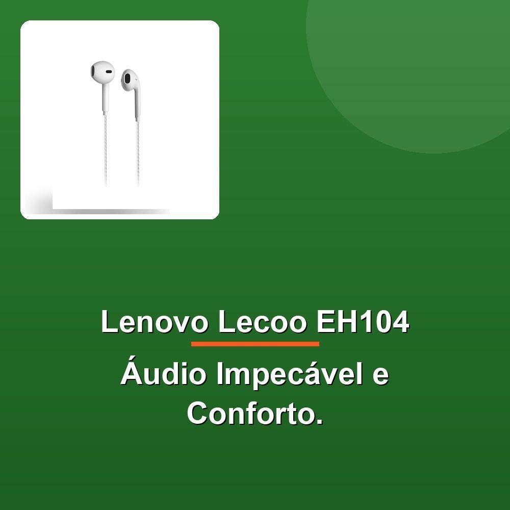 Fone De Ouvido Lenovo Lecoo Eh104 Intra P2 BrancoConecte-se ao seu mundo musical com o Fone de Ouvido Intra Lenovo Lecoo EH104. Procurando qualidade sonora sem pesar no bolso? Esse fone foi desenvolvido para oferecer a combinação perfeita de áudio impecável e preço acessível, ideal para o dia a dia.Aproveite a imersão sonora graças ao driver de 10mm que garante graves profundos e agudos cristalinos. A tecnologia Lenovo presente no design do EH104 proporciona um isolamento acústico que te permite desfrutar de sua música favorita sem distrações.Com fio de 1,1m de comprimento e conector P2 de 4 vias, você terá a liberdade de movimento sem perder a qualidade do som. As funcionalidades do controle remoto integrado permitem controlar o volume, navegar por suas músicas e atender chamadas de forma rápida e fácil.Leve o conforto para onde for! O EH104 se ajusta perfeitamente ao formato de sua orelha, proporcionando um uso confortável por horas a fio. Além disso, seu design compacto e leve o torna ideal para levar na bolsa ou mochila, acompanhando você em todos os momentos.Eleve sua experiência sonora sem gastar muito! Experimente o Fone de Ouvido Intra Lenovo Lecoo EH104 e descubra o prazer de uma música de alta qualidade ao seu alcance.Conecte-se ao seu mundo musical com o Fone de Ouvido Intra Lenovo Lecoo EH104. Procurando qualidade sonora sem pesar no bolso? Esse fone foi desenvolvido para oferecer a combinação perfeita de áudio impecável e preço acessível, ideal para o dia a dia.Aproveite a imersão sonora graças ao driver de 10mm que garante graves profundos e agudos cristalinos. A tecnologia Lenovo presente no design do EH104 proporciona um isolamento acústico que te permite desfrutar de sua música favorita sem distrações.Com fio de 1,1m de comprimento e conector P2 de 4 vias, você terá a liberdade de movimento sem perder a qualidade do som. As funcionalidades do controle remoto integrado permitem controlar o volume, navegar por suas músicas e atender chamadas de forma rápida e fácil.Leve o conforto para onde for! O EH104 se ajusta perfeitamente ao formato de sua orelha, proporcionando um uso confortável por horas a fio. Além disso, seu design compacto e leve o torna ideal para levar na bolsa ou mochila, acompanhando você em todos os momentos.Eleve sua experiência sonora sem gastar muito! Experimente o Fone de Ouvido Intra Lenovo Lecoo EH104 e descubra o prazer de uma música de alta qualidade ao seu alcance.
