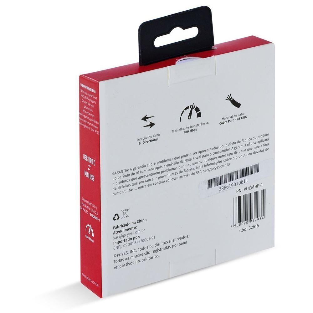 Cabo Usb Tipo C Mini Usb B 1m Preto