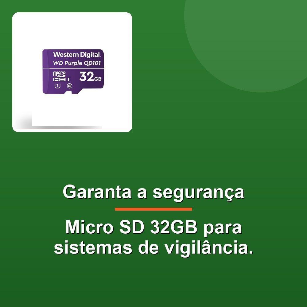Cartão Micro Sd 32gb Segurança EletrônicaO cartão microSD WD Purple 32GB é a solução ideal para sistemas de segurança que exigem confiabilidade e desempenho em condições extremas. Projetado especificamente para câmeras de segurança, veiculares e Mibo, o cartão garante gravações contínuas 24 horas por dia, 7 dias por semana, mesmo em caso de perda de conexão com a rede.Com sua alta capacidade de armazenamento de 32GB e velocidade de leitura e gravação sequencial de 100MB/s, o WD Purple permite a captura de imagens e vídeos em alta definição sem interrupções. Sua durabilidade é excepcional, suportando pelo menos 500 ciclos de gravação, garantindo a preservação de seus dados por um longo período.Acompanhe a saúde do seu cartão com a função Health Monitor, disponível em câmeras compatíveis. O Health Monitor fornece informações sobre o tempo de vida útil do cartão, permitindo uma gestão preventiva do armazenamento e evitando a perda de dados importantes.Com 3 anos de garantia e a certificação de qualidade WD, o cartão microSD Purple oferece a máxima segurança para seus dados e a tranquilidade de ter um sistema de segurança confiável.O cartão microSD WD Purple 32GB é a solução ideal para sistemas de segurança que exigem confiabilidade e desempenho em condições extremas. Projetado especificamente para câmeras de segurança, veiculares e Mibo, o cartão garante gravações contínuas 24 horas por dia, 7 dias por semana, mesmo em caso de perda de conexão com a rede.Com sua alta capacidade de armazenamento de 32GB e velocidade de leitura e gravação sequencial de 100MB/s, o WD Purple permite a captura de imagens e vídeos em alta definição sem interrupções. Sua durabilidade é excepcional, suportando pelo menos 500 ciclos de gravação, garantindo a preservação de seus dados por um longo período.Acompanhe a saúde do seu cartão com a função Health Monitor, disponível em câmeras compatíveis. O Health Monitor fornece informações sobre o tempo de vida útil do cartão, permitindo uma gestão preventiva do armazenamento e evitando a perda de dados importantes.Com 3 anos de garantia e a certificação de qualidade WD, o cartão microSD Purple oferece a máxima segurança para seus dados e a tranquilidade de ter um sistema de segurança confiável.