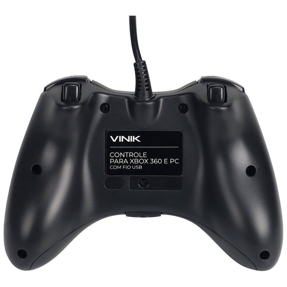Controle Xbox360/pc Usb Vinik X360Reviva os clássicos dos anos 2000 com o controle Vinik X360, a experiência retro que te transporta de volta aos momentos inesquecíveis de jogos como Minecraft: Xbox 360 Edition e Call of Duty: Black Ops. Feito para os fãs de jogos de gerações passadas, o X360 replica fielmente o design e o acabamento do controle tradicional, com todos os botões que você precisa para dominar seus jogos favoritos: A, B, Y, X, BACK, START, LT, LB, RT, RB e dois analógicos precisos, além dos direcionais em formato de cruz.Com um cabo de 1.8 metros e entrada USB, o X360 se conecta facilmente ao seu Xbox 360 e PC, abrindo um mundo de possibilidades. Com a tecnologia Plug and Play, você pode conectar o controle e começar a jogar em segundos, sem complicações. Para garantir uma experiência imersiva, o controle oferece um feedback tátil e precisa, permitindo que você capture cada movimento com precisão.A compatibilidade com Windows 98, ME, 2000, 2003, XP, Vista, Windows 7, 8, 10 e até mesmo Mac, torna o Vinik X360 a escolha perfeita para qualquer gamer que busca uma experiência retro nostálgica em seus games favoritos.Reviva os clássicos dos anos 2000 com o controle Vinik X360, a experiência retro que te transporta de volta aos momentos inesquecíveis de jogos como Minecraft: Xbox 360 Edition e Call of Duty: Black Ops. Feito para os fãs de jogos de gerações passadas, o X360 replica fielmente o design e o acabamento do controle tradicional, com todos os botões que você precisa para dominar seus jogos favoritos: A, B, Y, X, BACK, START, LT, LB, RT, RB e dois analógicos precisos, além dos direcionais em formato de cruz.Com um cabo de 1.8 metros e entrada USB, o X360 se conecta facilmente ao seu Xbox 360 e PC, abrindo um mundo de possibilidades. Com a tecnologia Plug and Play, você pode conectar o controle e começar a jogar em segundos, sem complicações. Para garantir uma experiência imersiva, o controle oferece um feedback tátil e precisa, permitindo que você capture cada movimento com precisão.A compatibilidade com Windows 98, ME, 2000, 2003, XP, Vista, Windows 7, 8, 10 e até mesmo Mac, torna o Vinik X360 a escolha perfeita para qualquer gamer que busca uma experiência retro nostálgica em seus games favoritos.