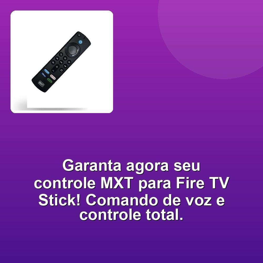 Controle Remoto Mxt Amazon Fire Stick TvConte com o Controle Remoto MXT para uma experiência completa com seu Amazon Fire TV Stick! Compatível com os modelos TV3 e Fire Stick 4K, este controle remoto oferece o máximo de conveniência e controle sobre seu sistema de streaming.Com o recurso de comando de voz integrado, você pode navegar pelo menu, pesquisar seus filmes e séries favoritos, ajustar o volume e muito mais, tudo com o poder da sua voz. Livre-se da necessidade de digitar e controle seu Fire TV Stick de forma rápida e intuitiva.Entendemos a importância de oferecer produtos de qualidade e confiáveis. Cada controle remoto MXT passa por um rigoroso processo de seleção, garantindo sua perfeita funcionalidade e durabilidade.Nossas entregas são rápidas e eficientes, para que você possa começar a aproveitar seu novo controle remoto o mais rápido possível. Sinta a diferença da qualidade e da atenção aos detalhes que colocamos em cada produto que enviamos. A paixão pela excelência é o que nos impulsiona a oferecer a você uma experiência de compra memorável e produtos que você pode confiar.Conte com o Controle Remoto MXT para uma experiência completa com seu Amazon Fire TV Stick! Compatível com os modelos TV3 e Fire Stick 4K, este controle remoto oferece o máximo de conveniência e controle sobre seu sistema de streaming.Com o recurso de comando de voz integrado, você pode navegar pelo menu, pesquisar seus filmes e séries favoritos, ajustar o volume e muito mais, tudo com o poder da sua voz. Livre-se da necessidade de digitar e controle seu Fire TV Stick de forma rápida e intuitiva.Entendemos a importância de oferecer produtos de qualidade e confiáveis. Cada controle remoto MXT passa por um rigoroso processo de seleção, garantindo sua perfeita funcionalidade e durabilidade.Nossas entregas são rápidas e eficientes, para que você possa começar a aproveitar seu novo controle remoto o mais rápido possível. Sinta a diferença da qualidade e da atenção aos detalhes que colocamos em cada produto que enviamos. A paixão pela excelência é o que nos impulsiona a oferecer a você uma experiência de compra memorável e produtos que você pode confiar.
