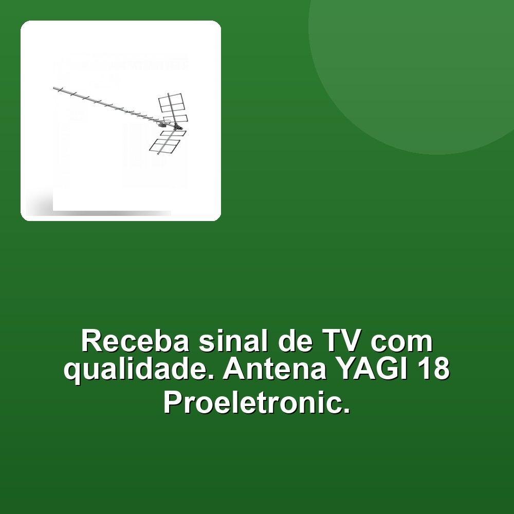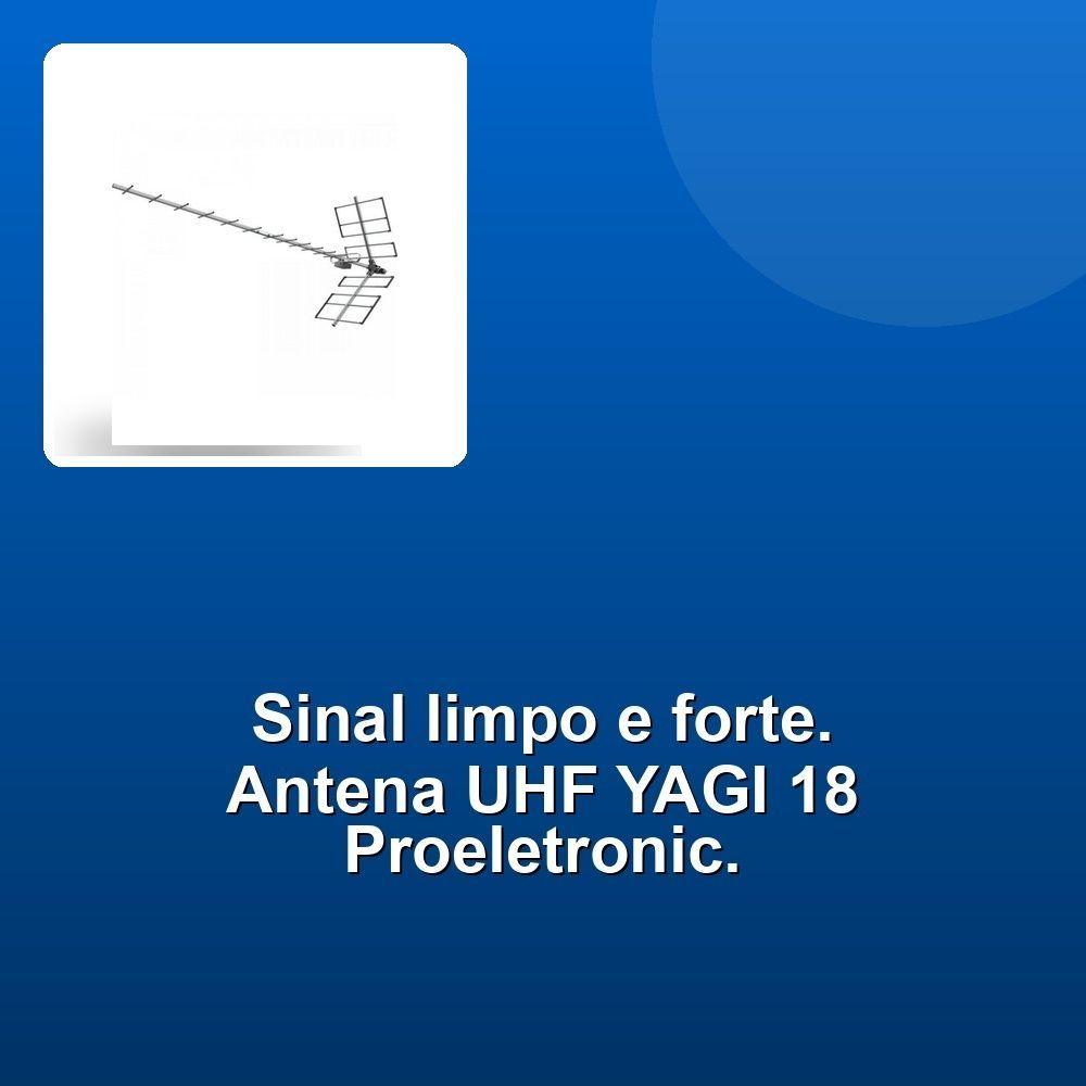 Antena Digital Uhf Yagi18 Proeletronic Prohd1118A Antena Digital UHF YAGI 18 PROHD1118 da Proeletronic é a escolha ideal para quem busca máxima qualidade na recepção de sinais de TV digital e analógica. Projetada na faixa de UHF (canais 14 a 69), esta antena oferece um desempenho excepcional, graças ao seu alto ganho de 18 dBi, garantindo imagens nítidas e estáveis, mesmo em áreas de difícil acesso ao sinal.Construída 100% em alumínio de excelente qualidade, a PROHD1118 combina robustez e durabilidade, sendo resistente às condições climáticas adversas. As partes plásticas possuem tratamento UV, proporcionando maior proteção contra os efeitos do sol e das intempéries, tornando-a uma solução confiável para uso externo em diversas localidades. Seu design bipartido é um verdadeiro diferencial, ocupando menos espaço no transporte e facilitando o armazenamento. Essa característica também otimiza os custos de envio, especialmente para e-commerces, tornando o modelo perfeito para ser enviado pelos Correios.Outra vantagem é a sua montagem extremamente simples e prática, graças ao exclusivo sistema de abre e trave, que economiza tempo e esforço durante a instalação. Por isso, a PROHD1118 é amplamente preferida pelos instaladores profissionais, garantindo eficiência e qualidade no resultado final. Além disso, sua engenharia avançada assegura alta compatibilidade com diversos formatos de transmissão, operando nas frequências de 470 a 806 MHz e com impedância de 75/300 Ohms.Pesando apenas 750 g e medindo 1270 x 320 x 152 mm, esta antena combina leveza e dimensões otimizadas, facilitando o manuseio e transporte. Com 13 elementos estrategicamente posicionados, ela maximiza a performance de recepção, permitindo que você aproveite seus programas favoritos com total qualidade de som e imagem.A Antena Digital UHF YAGI 18 PROHD1118 da Proeletronic é a escolha ideal para quem busca máxima qualidade na recepção de sinais de TV digital e analógica. Projetada na faixa de UHF (canais 14 a 69), esta antena oferece um desempenho excepcional, graças ao seu alto ganho de 18 dBi, garantindo imagens nítidas e estáveis, mesmo em áreas de difícil acesso ao sinal.Construída 100% em alumínio de excelente qualidade, a PROHD1118 combina robustez e durabilidade, sendo resistente às condições climáticas adversas. As partes plásticas possuem tratamento UV, proporcionando maior proteção contra os efeitos do sol e das intempéries, tornando-a uma solução confiável para uso externo em diversas localidades. Seu design bipartido é um verdadeiro diferencial, ocupando menos espaço no transporte e facilitando o armazenamento. Essa característica também otimiza os custos de envio, especialmente para e-commerces, tornando o modelo perfeito para ser enviado pelos Correios.Outra vantagem é a sua montagem extremamente simples e prática, graças ao exclusivo sistema de abre e trave, que economiza tempo e esforço durante a instalação. Por isso, a PROHD1118 é amplamente preferida pelos instaladores profissionais, garantindo eficiência e qualidade no resultado final. Além disso, sua engenharia avançada assegura alta compatibilidade com diversos formatos de transmissão, operando nas frequências de 470 a 806 MHz e com impedância de 75/300 Ohms.Pesando apenas 750 g e medindo 1270 x 320 x 152 mm, esta antena combina leveza e dimensões otimizadas, facilitando o manuseio e transporte. Com 13 elementos estrategicamente posicionados, ela maximiza a performance de recepção, permitindo que você aproveite seus programas favoritos com total qualidade de som e imagem.