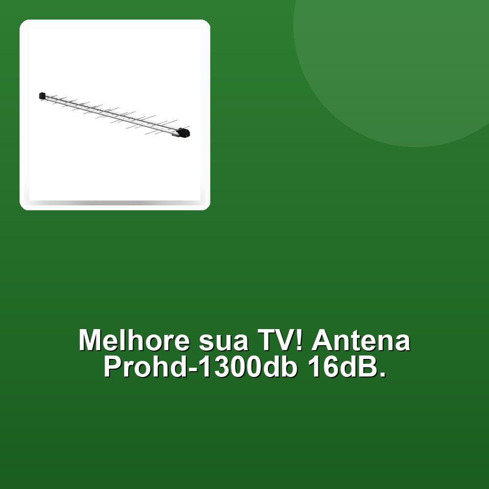 Antena Digital Externa Pro Eletronic Prohd-1300db 16dbDescubra a excelência em recepção de sinal com a Antena Digital Externa Pro Eletronic Prohd-1300db 16dB. Com um ganho impressionante de 16 dB e 38 elementos, ela garante qualidade superior de imagem e som. Ideal para captar canais de 14 a 69, opera na frequência de 470 a 806 MHz, oferecendo ampla cobertura. Seu conector tipo F fêmea e impedância de 75 Ohms asseguram fácil instalação e compatibilidade. Leve, com apenas 510 g, e compacta, mede 1250 x 322 mm. Embalada em caixa de papelão, possui garantia de 1 ano, garantindo tranquilidade e durabilidade.Descubra a excelência em recepção de sinal com a Antena Digital Externa Pro Eletronic Prohd-1300db 16dB. Com um ganho impressionante de 16 dB e 38 elementos, ela garante qualidade superior de imagem e som. Ideal para captar canais de 14 a 69, opera na frequência de 470 a 806 MHz, oferecendo ampla cobertura. Seu conector tipo F fêmea e impedância de 75 Ohms asseguram fácil instalação e compatibilidade. Leve, com apenas 510 g, e compacta, mede 1250 x 322 mm. Embalada em caixa de papelão, possui garantia de 1 ano, garantindo tranquilidade e durabilidade.