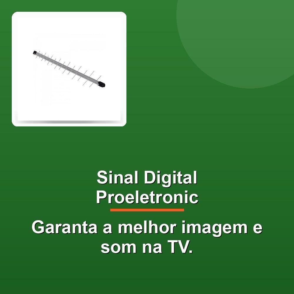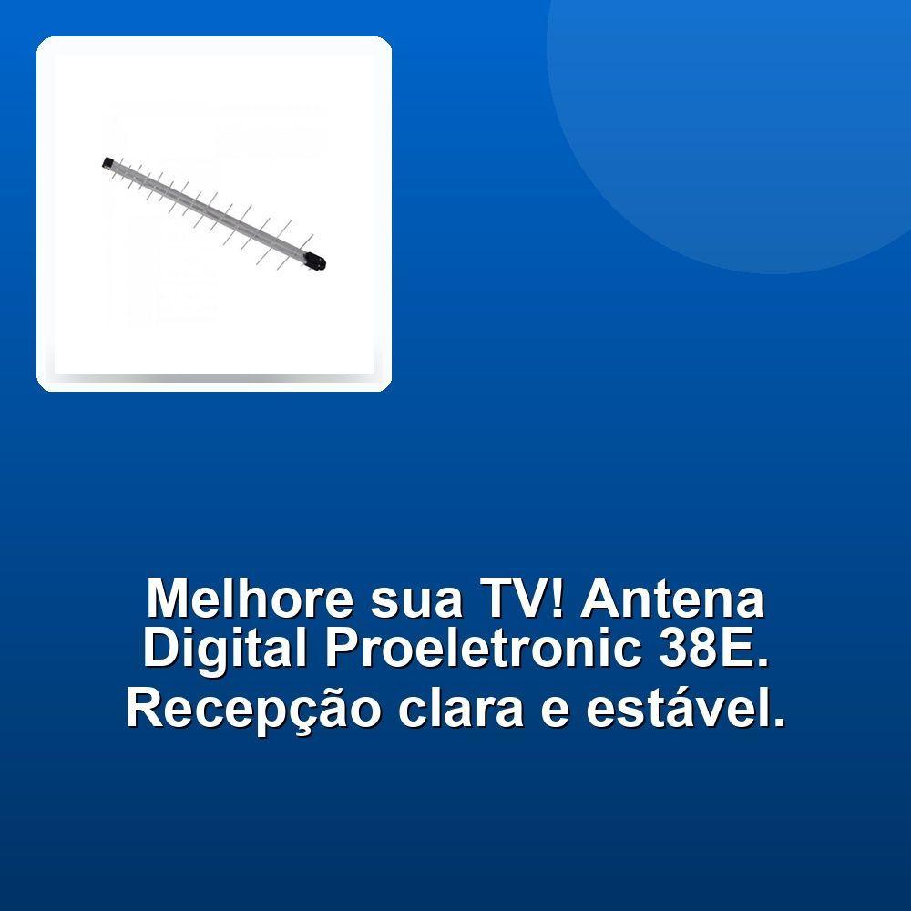 Antena Digital Black Externa Proeletronic 38e Prohd 1300dbDescubra a excelência em recepção de sinal com a Antena Digital Black Externa Proeletronic 38E Prohd 1300db. Projetada para oferecer uma experiência de visualização inigualável, esta antena é ideal para quem busca qualidade e nitidez em seus canais de televisão. Funciona numa faixa de frequência de 470 a 890 MHz, cobrindo os canais de 14 a 83 com eficiência impressionante.Composta por 38 elementos, a antena é projetada para otimizar a recepção, garantindo um sinal claro e estável. O ganho de 16 dBi oferece um desempenho superior mesmo em regiões mais afastadas dos centros de transmissão, enquanto a impedância de 75 Ohms assegura compatibilidade com a maioria dos equipamentos de TV. A conexão é simples e rápida, graças ao seu conector F fêmea, uma escolha padrão e confiável para instalações externas.Compacta e leve, a Antena Digital Black Externa Proeletronic 38E Prohd 1300db possui um comprimento de 1250 mm e pesa apenas 700 g, o que facilita a instalação e ajuste. Seja para melhorar a recepção dos canais digitais ou para garantir uma imagem de alta definição, esta antena é a solução perfeita para os mais variados ambientes e condições climáticas.A construção robusta e o design elegante asseguram durabilidade e estética, harmonizando com qualquer fachada ou telhado. Com a Proeletronic, você tem a garantia de tecnologia de ponta e anos de expertise no desenvolvimento de soluções em antenas. Transforme sua experiência televisiva e desfrute de cada detalhe das suas programações favoritas com a qualidade que você merece. Ivista em uma antena que se destaca por sua eficiência e robustez, a escolha certeira para consumidores exigentes.Descubra a excelência em recepção de sinal com a Antena Digital Black Externa Proeletronic 38E Prohd 1300db. Projetada para oferecer uma experiência de visualização inigualável, esta antena é ideal para quem busca qualidade e nitidez em seus canais de televisão. Funciona numa faixa de frequência de 470 a 890 MHz, cobrindo os canais de 14 a 83 com eficiência impressionante.Composta por 38 elementos, a antena é projetada para otimizar a recepção, garantindo um sinal claro e estável. O ganho de 16 dBi oferece um desempenho superior mesmo em regiões mais afastadas dos centros de transmissão, enquanto a impedância de 75 Ohms assegura compatibilidade com a maioria dos equipamentos de TV. A conexão é simples e rápida, graças ao seu conector F fêmea, uma escolha padrão e confiável para instalações externas.Compacta e leve, a Antena Digital Black Externa Proeletronic 38E Prohd 1300db possui um comprimento de 1250 mm e pesa apenas 700 g, o que facilita a instalação e ajuste. Seja para melhorar a recepção dos canais digitais ou para garantir uma imagem de alta definição, esta antena é a solução perfeita para os mais variados ambientes e condições climáticas.A construção robusta e o design elegante asseguram durabilidade e estética, harmonizando com qualquer fachada ou telhado. Com a Proeletronic, você tem a garantia de tecnologia de ponta e anos de expertise no desenvolvimento de soluções em antenas. Transforme sua experiência televisiva e desfrute de cada detalhe das suas programações favoritas com a qualidade que você merece. Ivista em uma antena que se destaca por sua eficiência e robustez, a escolha certeira para consumidores exigentes.
