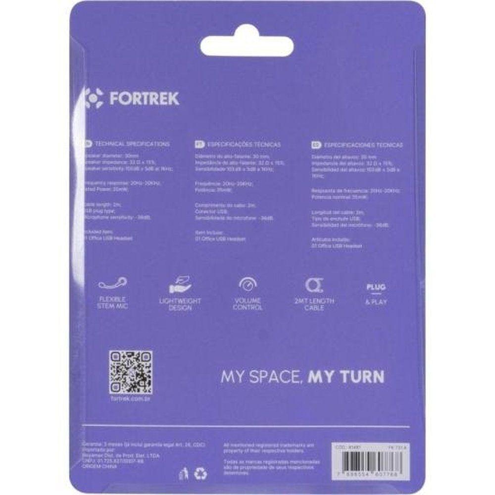 Headset Office Fortrek Fk731a UsbAumente a qualidade da sua comunicação com o Headset Office Fortrek FK 731A USB Preto! Perfeito para escritório, conferências e chamadas, este headset proporciona uma experiência eficiente e confortável em todas as suas interações.Com conexão USB, o FK 731A oferece a praticidade do plug & play, simplificando a instalação e eliminando complicações desnecessárias. Novas chamadas ou conferências, agora mais simples e rápidas! Enfrente seus compromissos profissionais com confiança, graças ao microfone de alta qualidade com haste flexível que permite ajustes personalizados, garantindo captação de áudio nítida e precisa.O design ultraleve do FK 731A torna o uso prolongado extremamente confortável, ideal para jornadas de trabalho intensas sem comprometer seu bem-estar. E para que você tenha total controle sobre sua experiência sonora, o headset conta com um prático controle de volume integrado, permitindo ajustes rápidos e precisos durante as chamadas.Com um cabo de 2 metros de comprimento, você terá a liberdade de movimento necessária para realizar suas atividades diárias sem se preocupar com a qualidade da conexão. Afinal, o FK 731A foi desenvolvido para acompanhar seu ritmo e facilitar sua vida profissional.**Experimente a qualidade e praticidade e traga o FK 731A para seu dia a dia!**Aumente a qualidade da sua comunicação com o Headset Office Fortrek FK 731A USB Preto! Perfeito para escritório, conferências e chamadas, este headset proporciona uma experiência eficiente e confortável em todas as suas interações.Com conexão USB, o FK 731A oferece a praticidade do plug & play, simplificando a instalação e eliminando complicações desnecessárias. Novas chamadas ou conferências, agora mais simples e rápidas! Enfrente seus compromissos profissionais com confiança, graças ao microfone de alta qualidade com haste flexível que permite ajustes personalizados, garantindo captação de áudio nítida e precisa.O design ultraleve do FK 731A torna o uso prolongado extremamente confortável, ideal para jornadas de trabalho intensas sem comprometer seu bem-estar. E para que você tenha total controle sobre sua experiência sonora, o headset conta com um prático controle de volume integrado, permitindo ajustes rápidos e precisos durante as chamadas.Com um cabo de 2 metros de comprimento, você terá a liberdade de movimento necessária para realizar suas atividades diárias sem se preocupar com a qualidade da conexão. Afinal, o FK 731A foi desenvolvido para acompanhar seu ritmo e facilitar sua vida profissional.**Experimente a qualidade e praticidade e traga o FK 731A para seu dia a dia!**