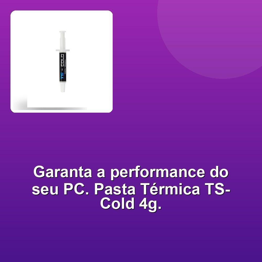 Pasta Térmica Ts Cold Seringa 4gPara os entusiastas que buscam o máximo de performance em seus equipamentos, a Pasta Térmica TS-Cold 10,5 W/mk da Implastec é a solução definitiva. Com sua revolucionária tecnologia utilizando micropartículas especiais, a TS-Cold garante a condução térmica superior, dissipando o calor gerado pelos componentes de alto desempenho com eficiência.Essa pasta térmica foi desenvolvida considerando os processadores de última geração, placas de vídeo potentes, consoles de jogos modernos e qualquer outro componente que demanda uma refrigeração impecável. O fluído silicone de alta qualidade garante uma aplicação rápida e fácil, formando uma camada fina e uniforme.Com densidade de 2,2 ± 0,1 g/mL e consistência NLGI 1, a TS-Cold se adapta perfeitamente ao formato dos componentes. Sua condutividade térmica de 10,5 W/mK e penetração de 310-340 mm/10 garantem máximo contato e dissipação de calor, mantendo seus componentes funcionando em temperaturas ideais.A TS-Cold se destaca por sua excepcional longa vida útil, oferecendo estabilidade térmica superior e desempenho consistente ao longo do tempo. Escolha a melhor solução para manter seus equipamentos funcionando a plenos poderes e descubra o potencial máximo deles.Para os entusiastas que buscam o máximo de performance em seus equipamentos, a Pasta Térmica TS-Cold 10,5 W/mk da Implastec é a solução definitiva. Com sua revolucionária tecnologia utilizando micropartículas especiais, a TS-Cold garante a condução térmica superior, dissipando o calor gerado pelos componentes de alto desempenho com eficiência.Essa pasta térmica foi desenvolvida considerando os processadores de última geração, placas de vídeo potentes, consoles de jogos modernos e qualquer outro componente que demanda uma refrigeração impecável. O fluído silicone de alta qualidade garante uma aplicação rápida e fácil, formando uma camada fina e uniforme.Com densidade de 2,2 ± 0,1 g/mL e consistência NLGI 1, a TS-Cold se adapta perfeitamente ao formato dos componentes. Sua condutividade térmica de 10,5 W/mK e penetração de 310-340 mm/10 garantem máximo contato e dissipação de calor, mantendo seus componentes funcionando em temperaturas ideais.A TS-Cold se destaca por sua excepcional longa vida útil, oferecendo estabilidade térmica superior e desempenho consistente ao longo do tempo. Escolha a melhor solução para manter seus equipamentos funcionando a plenos poderes e descubra o potencial máximo deles.