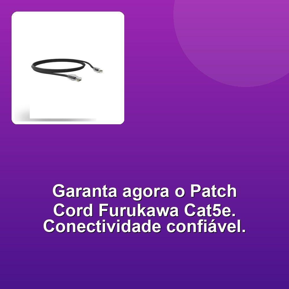 Patch Cord Furukawa Cat5e 2.5m PretoProcurando por um patch cord confiável para conectar seus dispositivos e garantir uma comunicação rápida e eficiente? O Patch Cord Furukawa Cat5e 2.5M Preto T568A 35104008 é a solução ideal para sua necessidade. Com excelente desempenho, este cabo U/UTP Cat.5e foi projetado para suportar tráfego de voz, dados e imagens, ultrapassando as normas da categoria.Certificado Anatel, o patch cord Furukawa garante qualidade e segurança em suas conexões. Ideal para sistemas horizontais ou secundários, interno, em salas de telecomunicações ou como ponto de acesso na área de trabalho, este cabo vai conectar seus dispositivos com estabilidade e confiabilidade. Sua construção robusta e o conector RJ-45 imerso em poeira, garantem uma conexão segura e duradoura. Acreditamos na excelência e em atender as necessidades dos nossos clientes, por isso, selecionamos cuidadosamente os melhores fornecedores para trazer produtos de alta qualidade.Investir em um patch cord Furukawa é sinônimo de investir em qualidade e performance, complementando seu ambiente de trabalho, escritório ou lar com a tecnologia que você precisa.Procurando por um patch cord confiável para conectar seus dispositivos e garantir uma comunicação rápida e eficiente? O Patch Cord Furukawa Cat5e 2.5M Preto T568A 35104008 é a solução ideal para sua necessidade. Com excelente desempenho, este cabo U/UTP Cat.5e foi projetado para suportar tráfego de voz, dados e imagens, ultrapassando as normas da categoria.Certificado Anatel, o patch cord Furukawa garante qualidade e segurança em suas conexões. Ideal para sistemas horizontais ou secundários, interno, em salas de telecomunicações ou como ponto de acesso na área de trabalho, este cabo vai conectar seus dispositivos com estabilidade e confiabilidade. Sua construção robusta e o conector RJ-45 imerso em poeira, garantem uma conexão segura e duradoura. Acreditamos na excelência e em atender as necessidades dos nossos clientes, por isso, selecionamos cuidadosamente os melhores fornecedores para trazer produtos de alta qualidade.Investir em um patch cord Furukawa é sinônimo de investir em qualidade e performance, complementando seu ambiente de trabalho, escritório ou lar com a tecnologia que você precisa.