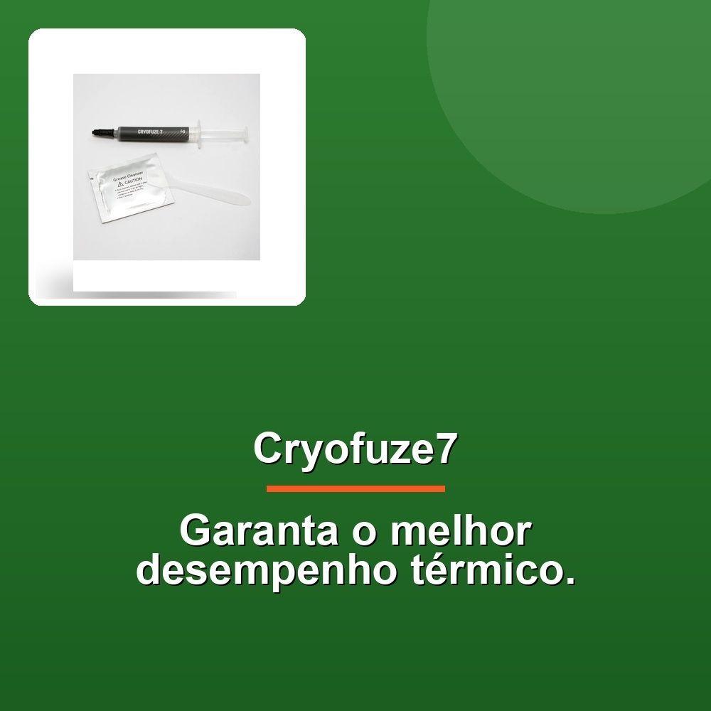Pasta Térmica Cryofuze7 4gEleve a temperatura do seu desempenho com a Pasta Térmica Cryofuze 5! Agora com cores vibrantes, a Cryofuze 5 não apenas mantém a eficiência térmica incomparável, mas também permite personalizar seu setup e destacar sua identidade. Desfrute de desempenho térmico superior com a baixa impedância térmica da Cryofuze 5, que reduz a resistência ao calor e proporciona adesão superior aos componentes. Sua fórmula não corrosiva garante a segurança de todos os seus componentes, enquanto a condutividade térmica excepcional garante desempenho ainda mais acentuado para sistemas de alto desempenho.Composto por tecnologia inovadora, o Cryofuze 5 mantém estabilidade térmica de -50°C a 240°C. Seus componentes multicolores são a prova de que estilo e performance caminham lado a lado. A embalagem compacta garante menor impacto ambiental com menor emissão de CO2 durante o transporte, sem pesar no seu bolso.O kit completo da Cryofuze 5 inclui lenço e aplicador, facilitando a aplicação e a limpeza, garantindo que a transferência de calor seja perfeita. Experimente a fusão de inovação, desempenho e sustentabilidade com a Cryofuze 5!Eleve a temperatura do seu desempenho com a Pasta Térmica Cryofuze 5! Agora com cores vibrantes, a Cryofuze 5 não apenas mantém a eficiência térmica incomparável, mas também permite personalizar seu setup e destacar sua identidade. Desfrute de desempenho térmico superior com a baixa impedância térmica da Cryofuze 5, que reduz a resistência ao calor e proporciona adesão superior aos componentes. Sua fórmula não corrosiva garante a segurança de todos os seus componentes, enquanto a condutividade térmica excepcional garante desempenho ainda mais acentuado para sistemas de alto desempenho.Composto por tecnologia inovadora, o Cryofuze 5 mantém estabilidade térmica de -50°C a 240°C. Seus componentes multicolores são a prova de que estilo e performance caminham lado a lado. A embalagem compacta garante menor impacto ambiental com menor emissão de CO2 durante o transporte, sem pesar no seu bolso.O kit completo da Cryofuze 5 inclui lenço e aplicador, facilitando a aplicação e a limpeza, garantindo que a transferência de calor seja perfeita. Experimente a fusão de inovação, desempenho e sustentabilidade com a Cryofuze 5!