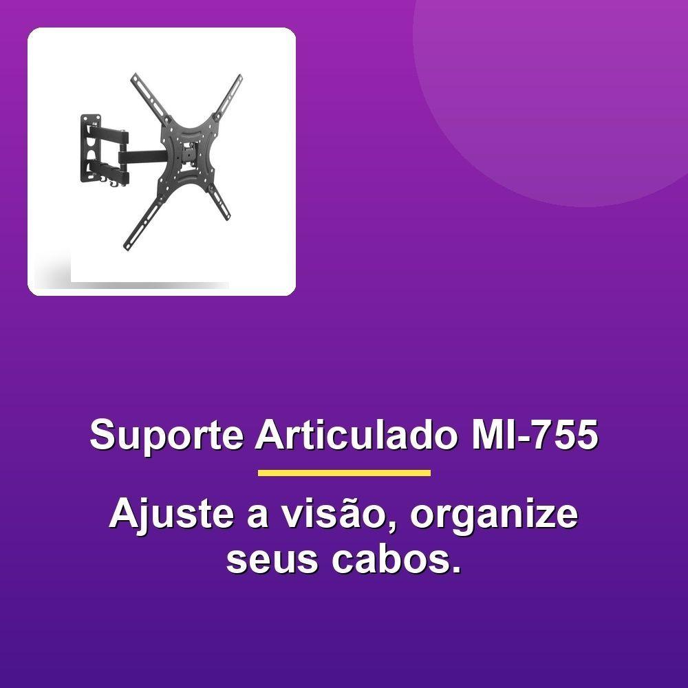 Suporte Tv Articulado Multivisão 55 Mi-75517 PretoO Suporte para TV Articulado Multivisão MI-755 17-55 é a solução perfeita para quem busca flexibilidade e otimização do espaço em casa. Desenvolvido para televisores LCD, LED e Plasma, o suporte oferece uma instalação simples e rápida, pronto para uso assim que você abrir a embalagem.Com um design triarticulado e capacidade de inclinação, você pode ajustar a posição da sua TV a qualquer ângulo, proporcionando a melhor visualização para todas as pessoas na sala. Imagine assistir seus filmes e séries favoritos na posição mais confortável, sem precisar se mexer em seu sofá. O ajuste de nível garante estabilidade e segurança sem importar qual ângulo você escolher.Para quem valoriza organização e limpeza, o Suporte MI-755 conta com um organizador de cabos integrado, mantendo seus fios escondidos e evitando aquela bagunça que pode estragar o visual da sua sala. Com distância mínima da parede de 1,5 cm e máxima de 39 cm, o suporte se adapta a diferentes espaços, seja em ambientes compactos ou mais amplos.Confiança e qualidade você encontra no Suporte Multivisão MI-755 17-55. Com capacidade de suportar televisores até 30kg e compatibilidade VESA de 75x75/100x100/200x200/300x300/400x400, ele é a escolha ideal para garantir a segurança e a durabilidade do seu aparelho. Acompanha instruções para facilitar a instalação.O Suporte para TV Articulado Multivisão MI-755 17-55 é a solução perfeita para quem busca flexibilidade e otimização do espaço em casa. Desenvolvido para televisores LCD, LED e Plasma, o suporte oferece uma instalação simples e rápida, pronto para uso assim que você abrir a embalagem.Com um design triarticulado e capacidade de inclinação, você pode ajustar a posição da sua TV a qualquer ângulo, proporcionando a melhor visualização para todas as pessoas na sala. Imagine assistir seus filmes e séries favoritos na posição mais confortável, sem precisar se mexer em seu sofá. O ajuste de nível garante estabilidade e segurança sem importar qual ângulo você escolher.Para quem valoriza organização e limpeza, o Suporte MI-755 conta com um organizador de cabos integrado, mantendo seus fios escondidos e evitando aquela bagunça que pode estragar o visual da sua sala. Com distância mínima da parede de 1,5 cm e máxima de 39 cm, o suporte se adapta a diferentes espaços, seja em ambientes compactos ou mais amplos.Confiança e qualidade você encontra no Suporte Multivisão MI-755 17-55. Com capacidade de suportar televisores até 30kg e compatibilidade VESA de 75x75/100x100/200x200/300x300/400x400, ele é a escolha ideal para garantir a segurança e a durabilidade do seu aparelho. Acompanha instruções para facilitar a instalação.