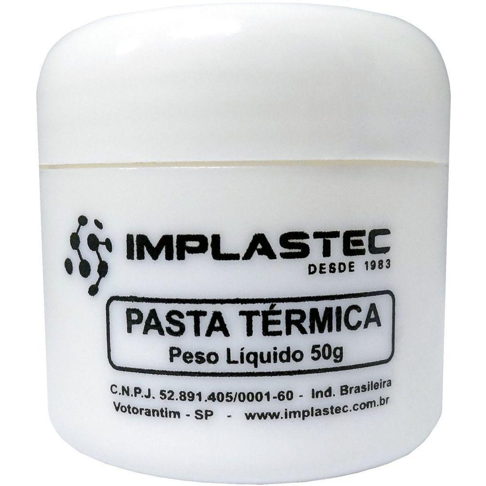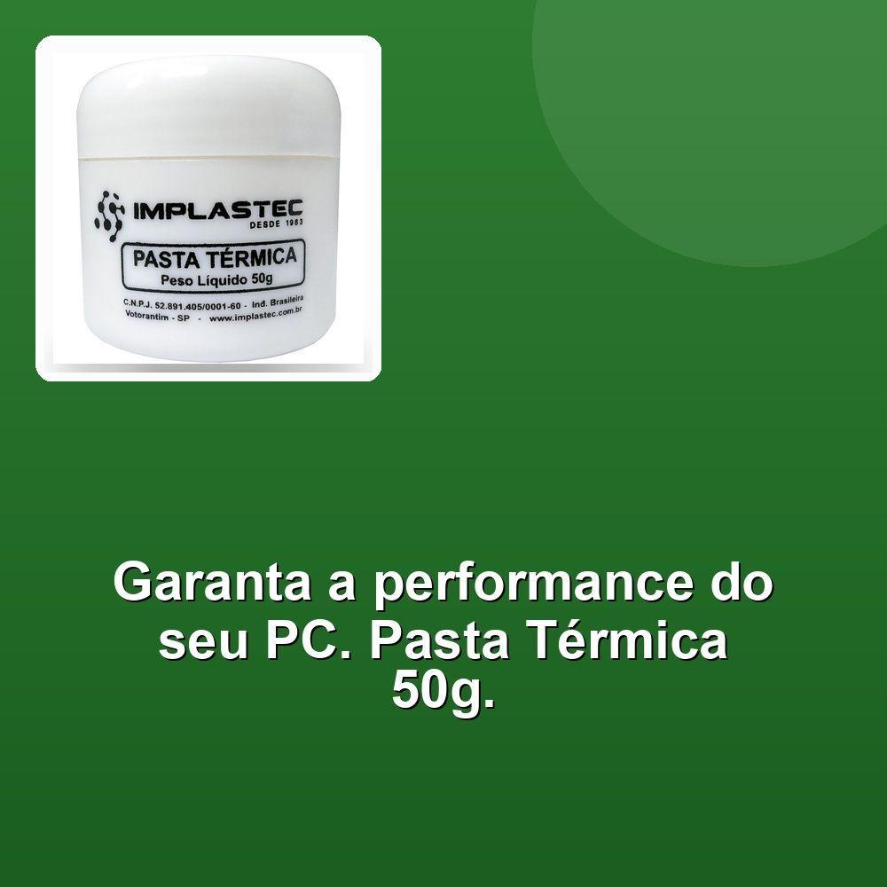 Pasta Térmica Pote Com 50gOtimize a performance do seu sistema com a Pasta Térmica Implastec de 50g. Essencial para eliminar o ar e garantir acoplamento perfeito entre componentes eletrônicos e dissipadores, como processadores e coolers. Trabalhe em temperaturas mais seguras e com maior eficiência. Sua cor branca brilhante, consistência pastosa e faixa de temperatura de -40 a 200°C garantem aplicações em diversas fontes de calor, termopares e resistências. Com condutividade térmica de 0,4 w/mk e exundação de 0,4%, esta pasta à base de silicone de alto peso molecular assegura desempenho térmico superior, preenchendo micro lacunas para maximizar a troca de calor.Otimize a performance do seu sistema com a Pasta Térmica Implastec de 50g. Essencial para eliminar o ar e garantir acoplamento perfeito entre componentes eletrônicos e dissipadores, como processadores e coolers. Trabalhe em temperaturas mais seguras e com maior eficiência. Sua cor branca brilhante, consistência pastosa e faixa de temperatura de -40 a 200°C garantem aplicações em diversas fontes de calor, termopares e resistências. Com condutividade térmica de 0,4 w/mk e exundação de 0,4%, esta pasta à base de silicone de alto peso molecular assegura desempenho térmico superior, preenchendo micro lacunas para maximizar a troca de calor.