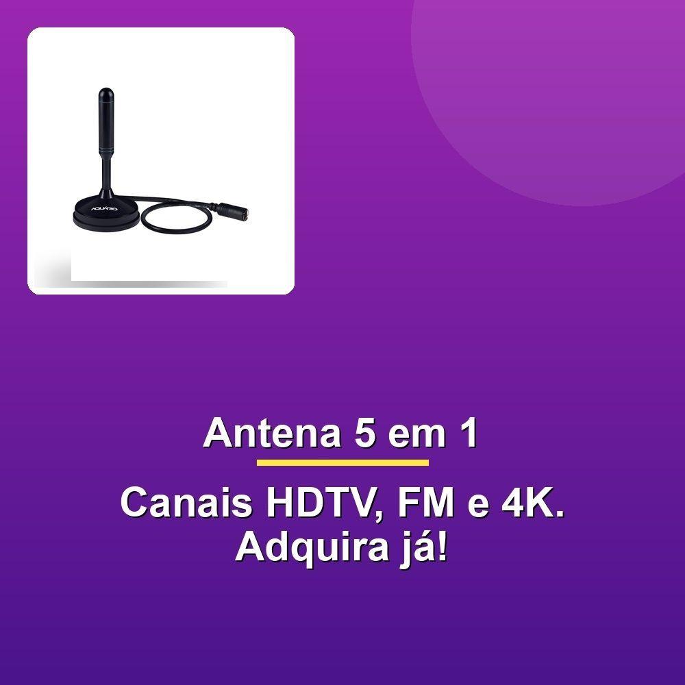 Antena Digital Hdtv 5 Em 1 Vhf/uhf/fm/hdtv/4k 5m Dtv-150A Antena Digital HDTV 5 em 1 é a solução ideal para quem busca qualidade superior de som e imagem em sua TV, aliada a um design moderno e compacto. Com o melhor desempenho do mercado, este produto foi desenvolvido para garantir uma experiência de entretenimento incomparável, captando sinais em VHF, UHF, FM e HDTV digital, além de ser compatível com a tecnologia 4K. Com esta antena, você terá acesso a uma maior variedade de canais e poderá desfrutar de imagens nítidas e cores vibrantes, tudo em alta definição.Prática e versátil, a antena já vem montada e pode ser instalada tanto em ambientes internos quanto externos, adaptando-se às suas necessidades. Seu cabo de 5 metros proporciona mais liberdade na escolha do local de instalação, garantindo maior conveniência e flexibilidade. Além disso, a base magnetizada oferece estabilidade e facilidade na fixação, tornando o processo de instalação ainda mais simples e eficiente.Com design funcional e moderno, esta antena compacta se integra perfeitamente à decoração de qualquer ambiente, sem comprometer o espaço ou a estética. Sua compatibilidade com todos os modelos de TVs e conversores digitais do mercado elimina preocupações, tornando-a uma escolha certeira para qualquer situação. Seja para assistir aos novos canais digitais em Full HD ou para explorar a tecnologia 4K, esta antena é a ferramenta definitiva para transformar a maneira como você consome entretenimento.Fabricada com especificações técnicas de alta qualidade, esta antena opera na frequência de 470-890 MHz, com ganho de 3 dBi, e conta com um conector F macho para uma conexão segura e eficiente. Com apenas 355 g, é leve e fácil de manusear, garantindo praticidade desde a instalação até o uso diário. Tudo o que você precisa para uma experiência audiovisual surpreendente está aqui. Adquira agora a Antena Digital HDTV 5 em 1 e descubra um novo padrão de qualidade e desempenho em sua TV!A Antena Digital HDTV 5 em 1 é a solução ideal para quem busca qualidade superior de som e imagem em sua TV, aliada a um design moderno e compacto. Com o melhor desempenho do mercado, este produto foi desenvolvido para garantir uma experiência de entretenimento incomparável, captando sinais em VHF, UHF, FM e HDTV digital, além de ser compatível com a tecnologia 4K. Com esta antena, você terá acesso a uma maior variedade de canais e poderá desfrutar de imagens nítidas e cores vibrantes, tudo em alta definição.Prática e versátil, a antena já vem montada e pode ser instalada tanto em ambientes internos quanto externos, adaptando-se às suas necessidades. Seu cabo de 5 metros proporciona mais liberdade na escolha do local de instalação, garantindo maior conveniência e flexibilidade. Além disso, a base magnetizada oferece estabilidade e facilidade na fixação, tornando o processo de instalação ainda mais simples e eficiente.Com design funcional e moderno, esta antena compacta se integra perfeitamente à decoração de qualquer ambiente, sem comprometer o espaço ou a estética. Sua compatibilidade com todos os modelos de TVs e conversores digitais do mercado elimina preocupações, tornando-a uma escolha certeira para qualquer situação. Seja para assistir aos novos canais digitais em Full HD ou para explorar a tecnologia 4K, esta antena é a ferramenta definitiva para transformar a maneira como você consome entretenimento.Fabricada com especificações técnicas de alta qualidade, esta antena opera na frequência de 470-890 MHz, com ganho de 3 dBi, e conta com um conector F macho para uma conexão segura e eficiente. Com apenas 355 g, é leve e fácil de manusear, garantindo praticidade desde a instalação até o uso diário. Tudo o que você precisa para uma experiência audiovisual surpreendente está aqui. Adquira agora a Antena Digital HDTV 5 em 1 e descubra um novo padrão de qualidade e desempenho em sua TV!