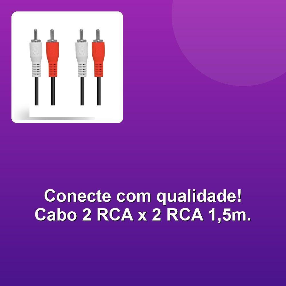 Cabo 2 Rca X2 Rca 1,5 MetrosO Cabo 2 RCA x 2 RCA de 1,5 metros é a solução ideal para conectar seus dispositivos de áudio e vídeo com alta qualidade. Com conectores RCA revestidos em níquel, este cabo garante uma transmissão de sinal aprimorada, reduzindo ruídos e oferecendo uma experiência sonora e visual mais imersiva. O revestimento em níquel não apenas aumenta a durabilidade do produto, mas também melhora sua performance mesmo em condições de uso prolongado. Com 1,5 metros de comprimento, o cabo oferece flexibilidade para conectar seus dispositivos sem complicações, permitindo organização prática dos equipamentos. Ele se adapta perfeitamente a sistemas de som, televisores, home theaters e outros dispositivos de áudio e vídeo. A escolha do Cabo 2 RCA x 2 RCA é optar por excelência, funcionalidade e confiabilidade. Nosso compromisso com a qualidade vai além do produto: cada cabo é resultado de um rigoroso processo de seleção de fornecedores que garante itens confiáveis e de alto padrão. Da seleção do produto à entrega eficiente, cada detalhe é pensado para proporcionar a você a melhor experiência possível, garantindo a sua satisfação.O Cabo 2 RCA x 2 RCA de 1,5 metros é a solução ideal para conectar seus dispositivos de áudio e vídeo com alta qualidade. Com conectores RCA revestidos em níquel, este cabo garante uma transmissão de sinal aprimorada, reduzindo ruídos e oferecendo uma experiência sonora e visual mais imersiva. O revestimento em níquel não apenas aumenta a durabilidade do produto, mas também melhora sua performance mesmo em condições de uso prolongado. Com 1,5 metros de comprimento, o cabo oferece flexibilidade para conectar seus dispositivos sem complicações, permitindo organização prática dos equipamentos. Ele se adapta perfeitamente a sistemas de som, televisores, home theaters e outros dispositivos de áudio e vídeo. A escolha do Cabo 2 RCA x 2 RCA é optar por excelência, funcionalidade e confiabilidade. Nosso compromisso com a qualidade vai além do produto: cada cabo é resultado de um rigoroso processo de seleção de fornecedores que garante itens confiáveis e de alto padrão. Da seleção do produto à entrega eficiente, cada detalhe é pensado para proporcionar a você a melhor experiência possível, garantindo a sua satisfação.