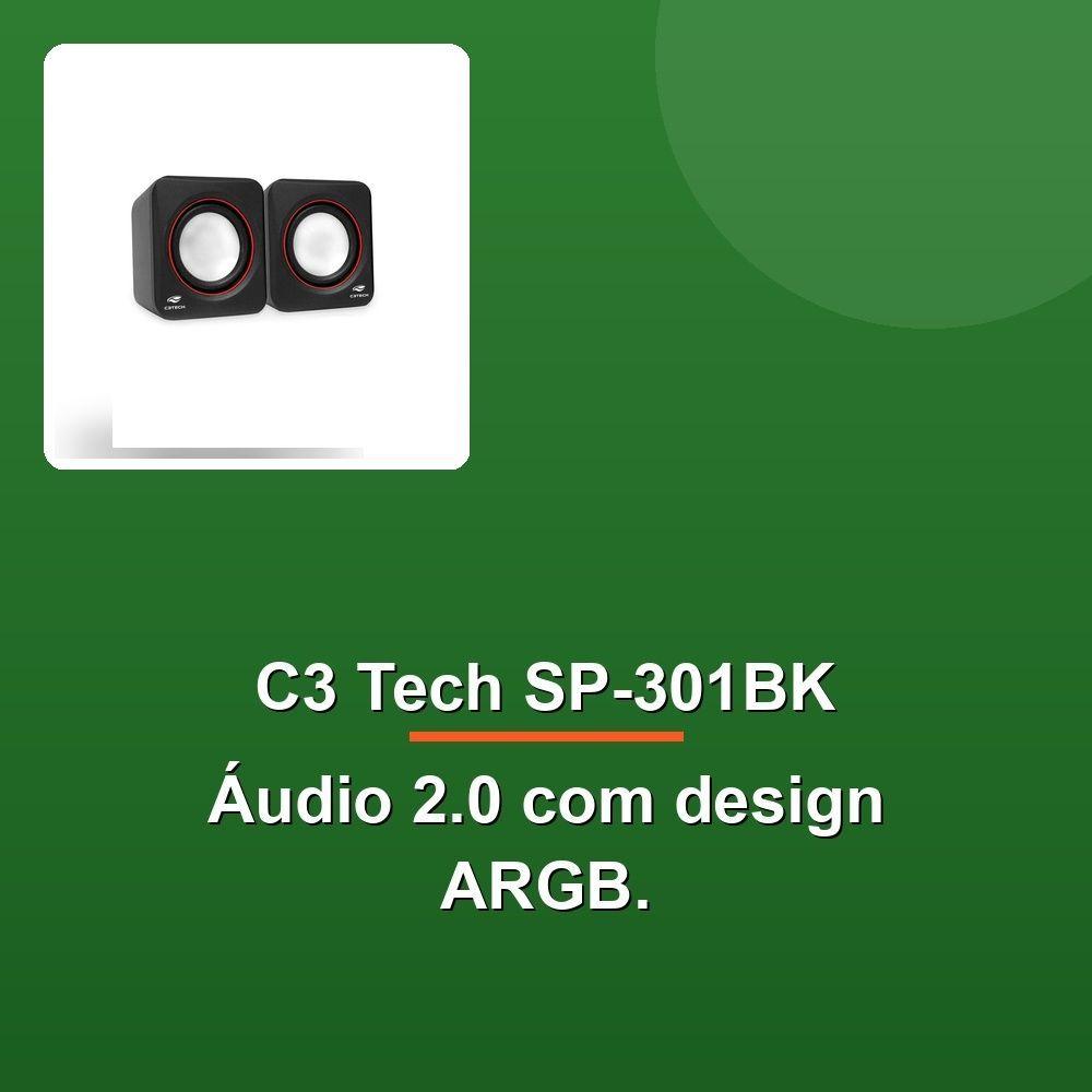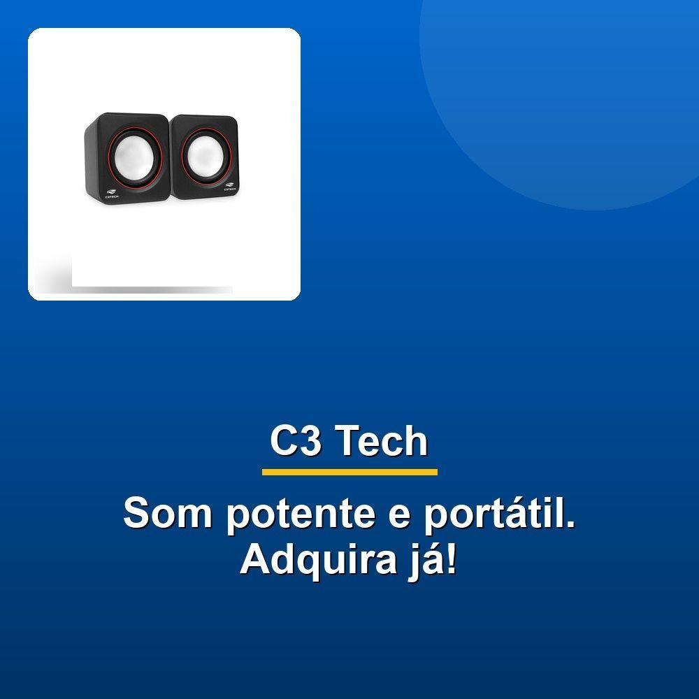 Caixa De Som C3 Tech Portátil 3w PretaA Caixa de Som C3 Tech 2.0 Portátil SP-301BK é a escolha perfeita para quem valoriza qualidade sonora e praticidade em um produto compacto e moderno. Com um design elegante e leve, ela é ideal para acompanhar você no dia a dia, seja no trabalho, estudos ou momentos de lazer. Desenvolvida especialmente para notebooks e desktops, esta mini speaker surpreende pela eficiência sonora, oferecendo uma experiência envolvente e clara com seus 3W RMS de potência.Com sistema de áudio 2.0 e blindagem eletromagnética, ela garante uma reprodução sem interferências, preservando a fidelidade das suas músicas favoritas, podcasts ou vídeos. Sua conexão simples via entrada P2 de 3.5 mm e alimentação por porta USB tornam o uso extremamente prático, eliminando a necessidade de baterias externas e oferecendo compatibilidade com diversos dispositivos. Além disso, a voltagem USB de 5VDC e o consumo máximo de 100mA garantem eficiência energética, promovendo uma experiência consistente e duradoura.Fabricada em plástico ABS resistente, a Caixa de Som C3 Tech é durável e possui dimensões compactas de 69 x 63 x 65 mm, permitindo que você a transporte facilmente para qualquer lugar. Com uma faixa de frequência de 20 Hz a 16 KHz e uma relação sinal-ruído de 80 dB, ela entrega um som nítido e potente, enquanto sua baixa distorção (=0.5% a 1W 1KHz) reforça o compromisso com a qualidade sonora. Certificada pelos padrões CE e FCC, o produto combina segurança e confiabilidade.Com apenas 280 gramas de peso, incluindo a embalagem, a SP-301BK é leve e prática de manusear. Perfeita para ambientes com temperatura de até 45º e umidade entre 45% e 90%, ela foi projetada para atender às suas necessidades em diversas condições. E para sua tranquilidade, o produto conta com 3 meses de garantia, conforme o Código de Defesa do Consumidor.A Caixa de Som C3 Tech 2.0 Portátil SP-301BK é a escolha perfeita para quem valoriza qualidade sonora e praticidade em um produto compacto e moderno. Com um design elegante e leve, ela é ideal para acompanhar você no dia a dia, seja no trabalho, estudos ou momentos de lazer. Desenvolvida especialmente para notebooks e desktops, esta mini speaker surpreende pela eficiência sonora, oferecendo uma experiência envolvente e clara com seus 3W RMS de potência.Com sistema de áudio 2.0 e blindagem eletromagnética, ela garante uma reprodução sem interferências, preservando a fidelidade das suas músicas favoritas, podcasts ou vídeos. Sua conexão simples via entrada P2 de 3.5 mm e alimentação por porta USB tornam o uso extremamente prático, eliminando a necessidade de baterias externas e oferecendo compatibilidade com diversos dispositivos. Além disso, a voltagem USB de 5VDC e o consumo máximo de 100mA garantem eficiência energética, promovendo uma experiência consistente e duradoura.Fabricada em plástico ABS resistente, a Caixa de Som C3 Tech é durável e possui dimensões compactas de 69 x 63 x 65 mm, permitindo que você a transporte facilmente para qualquer lugar. Com uma faixa de frequência de 20 Hz a 16 KHz e uma relação sinal-ruído de 80 dB, ela entrega um som nítido e potente, enquanto sua baixa distorção (=0.5% a 1W 1KHz) reforça o compromisso com a qualidade sonora. Certificada pelos padrões CE e FCC, o produto combina segurança e confiabilidade.Com apenas 280 gramas de peso, incluindo a embalagem, a SP-301BK é leve e prática de manusear. Perfeita para ambientes com temperatura de até 45º e umidade entre 45% e 90%, ela foi projetada para atender às suas necessidades em diversas condições. E para sua tranquilidade, o produto conta com 3 meses de garantia, conforme o Código de Defesa do Consumidor.