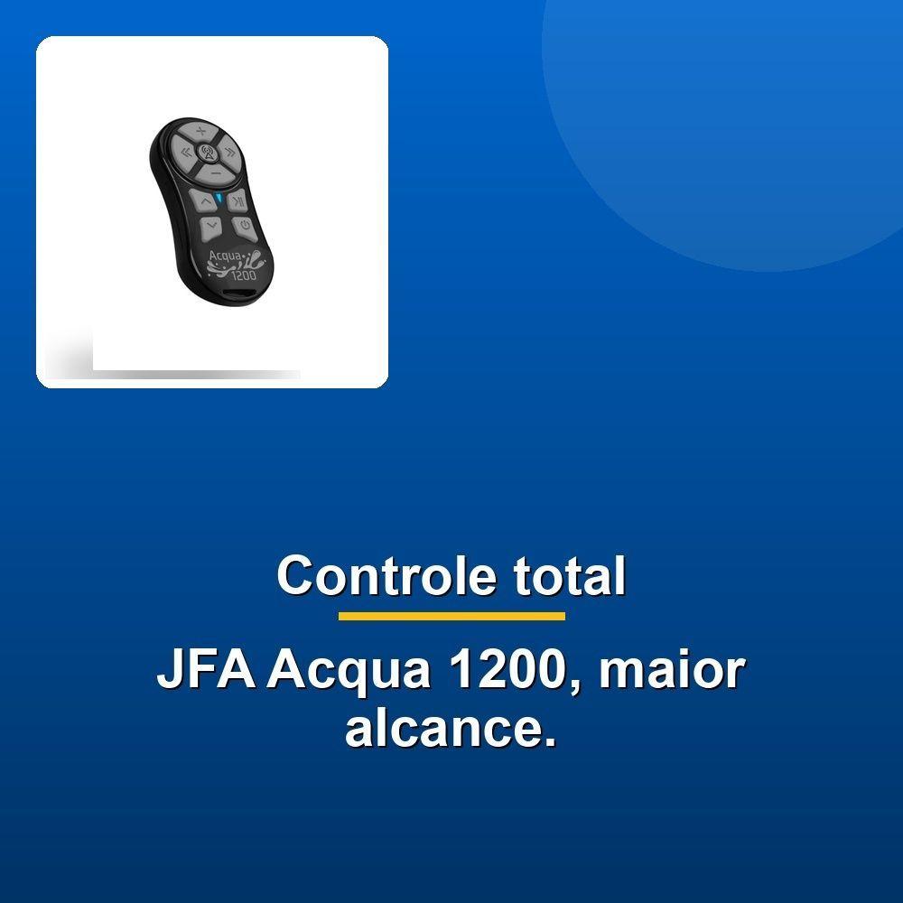 Controle Remoto Jfa Acqua1200 PretoControle seu som automotivo como nunca antes com o Jfa Acqua 1200, a solução definitiva para uma experiência sonora imersiva e sem limites. Com alcance impressionante de até 1200 metros em área aberta, o Acqua 1200 se destaca como o controle de som automotivo com maior alcance do mercado. Imagine controlar sua música favorita, podcasts ou audiobooks enquanto você se desloca em seu veículo, mesmo a grandes distâncias.A praticidade do Acqua 1200 se estende além do alcance. Ele oferece dois modos de funcionamento: o modo memória, que permite armazenar até 8 aparelhos pré-cadastrados, e o modo aprender, que se codifica através do controle infravermelho (IR) original do seu player. Com o Acqua 1200, você controla a trilha sonora do seu dia a dia com facilidade e personalização.Desenvolvido para garantir durabilidade e conforto, o Acqua 1200 apresenta teclas em silicone com alta resistência, gravadas em baixo relevo para um manuseio intuitivo e preciso. Seu design ergonômico se adapta perfeitamente à sua mão, proporcionando uma experiência de uso prazerosa. A central slim e o receptor ultrassensível garantem um controle preciso e responsivo, mesmo em ambientes com ruído.Experimente a liberdade de controlar seu som automotivo de forma descomplicada e com alcance excepcional. O Jfa Acqua 1200 é a escolha ideal para quem busca qualidade, praticidade e inovação no universo da música automotiva.Controle seu som automotivo como nunca antes com o Jfa Acqua 1200, a solução definitiva para uma experiência sonora imersiva e sem limites. Com alcance impressionante de até 1200 metros em área aberta, o Acqua 1200 se destaca como o controle de som automotivo com maior alcance do mercado. Imagine controlar sua música favorita, podcasts ou audiobooks enquanto você se desloca em seu veículo, mesmo a grandes distâncias.A praticidade do Acqua 1200 se estende além do alcance. Ele oferece dois modos de funcionamento: o modo memória, que permite armazenar até 8 aparelhos pré-cadastrados, e o modo aprender, que se codifica através do controle infravermelho (IR) original do seu player. Com o Acqua 1200, você controla a trilha sonora do seu dia a dia com facilidade e personalização.Desenvolvido para garantir durabilidade e conforto, o Acqua 1200 apresenta teclas em silicone com alta resistência, gravadas em baixo relevo para um manuseio intuitivo e preciso. Seu design ergonômico se adapta perfeitamente à sua mão, proporcionando uma experiência de uso prazerosa. A central slim e o receptor ultrassensível garantem um controle preciso e responsivo, mesmo em ambientes com ruído.Experimente a liberdade de controlar seu som automotivo de forma descomplicada e com alcance excepcional. O Jfa Acqua 1200 é a escolha ideal para quem busca qualidade, praticidade e inovação no universo da música automotiva.