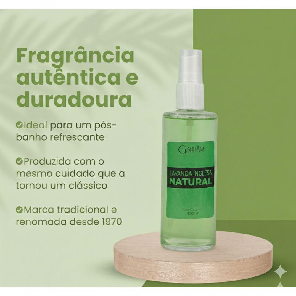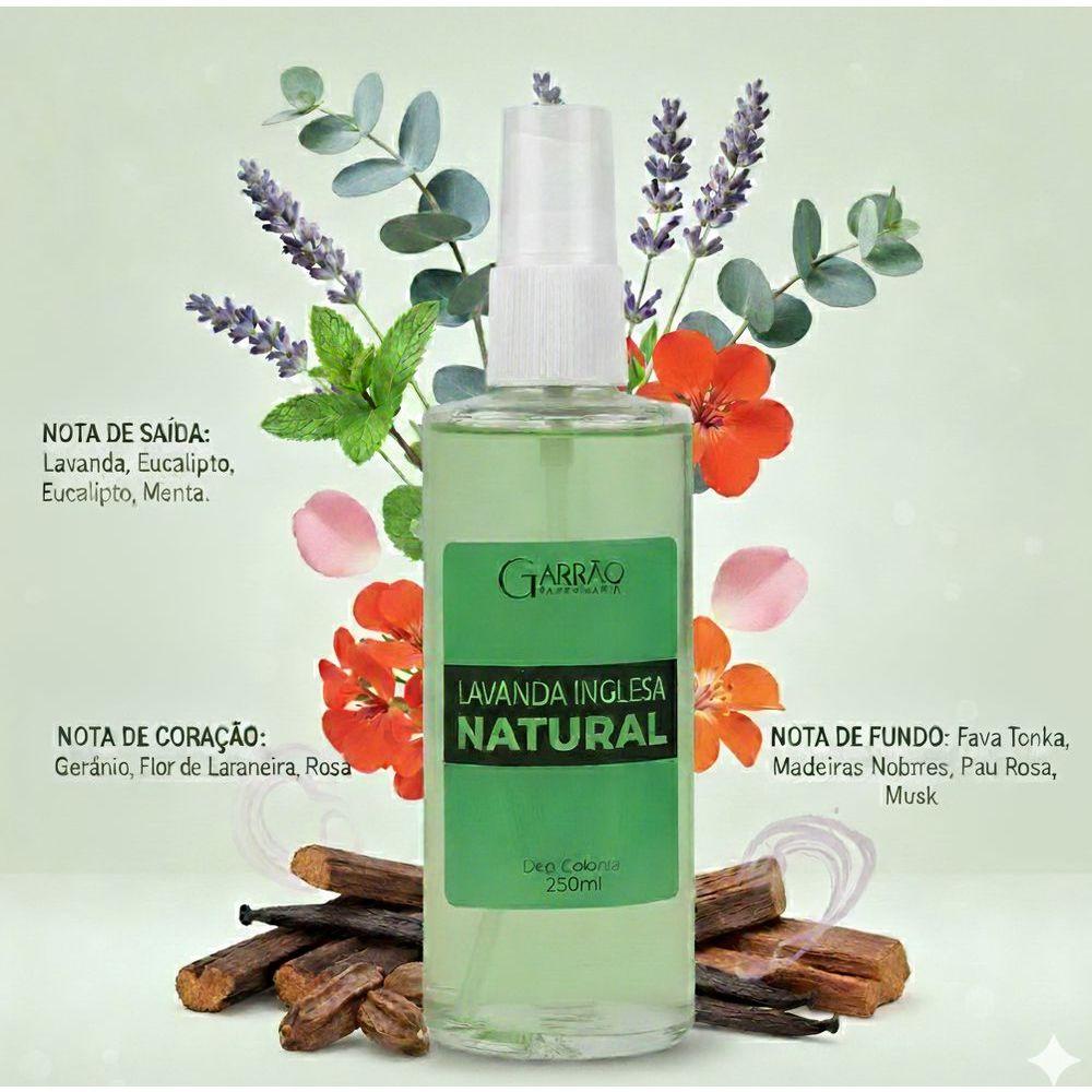 Colônia Lavanda Inglesa Natural Garrão 250mlColônia Lavanda Inglesa Natural GarrãoUm Clássico de Elegância que Atravessa o TempoA Colônia Lavanda Inglesa Natural Garrão traduz a sofisticação de outras épocas em uma fragrância marcante e cheia de personalidade. Inspirada no charme dos anos 1970, ela transforma o cuidado diário em um verdadeiro ritual de bem-estar, frescor e distinção.Equilibrada e acolhedora, essa colônia é perfeita para quem aprecia aromas clássicos, limpos e elegantes, capazes de trazer conforto e refinamento ao longo de todo o dia. A Essência do Clássico AtemporalFrescor Puro e RevitalizanteA união da lavanda com notas de eucalipto e menta oferece uma sensação imediata de limpeza e leveza, ideal para o pós-banho e para renovar as energias.Elegância com Toque RetrôNo coração da fragrância, um delicado buquê floral revela suavidade e charme clássico, remetendo à sofisticação das fragrâncias tradicionais.Conforto que PermaneceA base quente, composta por madeiras nobres, fava tonka, pau-rosa e musk, envolve a pele com uma aura aconchegante e refinada, deixando um rastro elegante e memorável.Tradição e Qualidade GarrãoProduzida com o cuidado e a dedicação que consagraram a Garrão, esta colônia preserva a autenticidade de uma fragrância clássica e confiável. Uma Experiência Olfativa ElegantePertencente à família Floral Aromático (Eau Fraîche), a Lavanda Inglesa Garrão revela uma construção harmoniosa e sofisticada:Notas de SaídaLavanda fresca combinada ao toque estimulante do eucalipto e da menta, despertando os sentidos com leveza.Notas de CoraçãoGerânio, flor de laranjeira e rosa formam um buquê floral delicado, elegante e atemporal.Notas de FundoFava tonka, madeiras nobres, pau-rosa e musk garantem fixação confortável e um acabamento suave e sofisticado. Informações do ProdutoTipo: Colônia (Eau Fraîche)Perfil Olfativo: Clássico, sofisticado e acolhedorUso: Ideal para o dia a dia, especialmente após o banhoAplicação: Spray prático para um ritual diário de cuidadoReviva o charme de uma época inesquecível e transforme sua rotina em um momento de elegância e bem-estar com a Colônia Lavanda Inglesa Natural Garrão. Um clássico que continua atual.