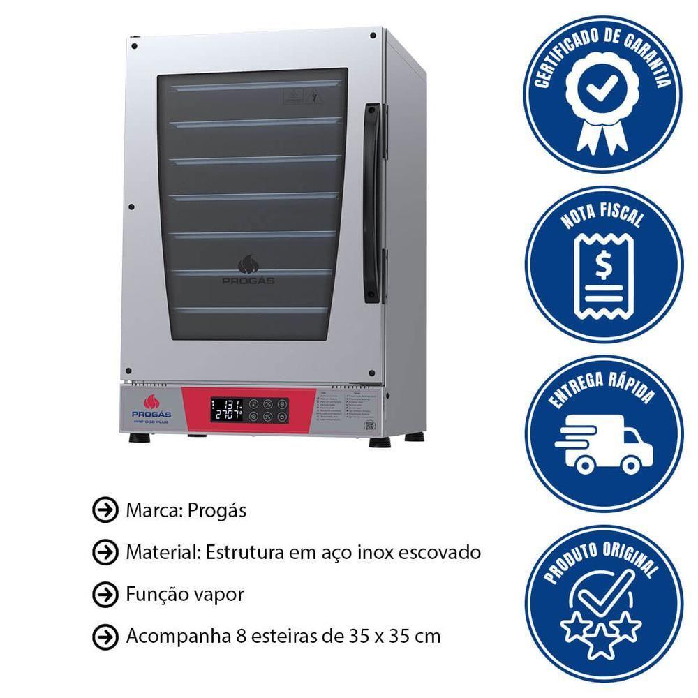 Forno Turbo Elétrico Progás Prp-008 Plus Vermelho 8 Esteiras Com Vapor 220V P45080