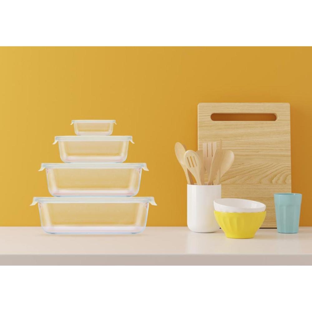 Kit 6 Potes Hermético Marmita de Vidro Retangular 640ml Mor