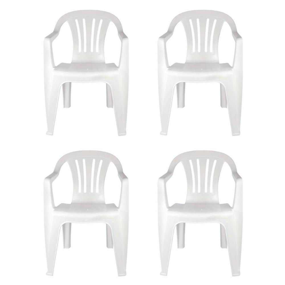 Kit 4 Cadeiras Poltrona Plástica Empilhavel Reforçada Branca 182kg Mor