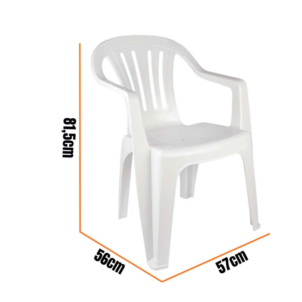 Kit 4 Cadeiras Poltrona Plástica Empilhavel Reforçada Branca 182kg Mor As Poltronas Plásticas vem para compor a linha de móveis injetados da Mor. Com excelente acabamento, elas passam por rigorosos testes de qualidade e segurança para receber o certificado do INMETRO através da norma ABNT 14776 e portarias 341 e 342 de 22 de julho de 2014, na categoria de Produto B, uso irrestrito. Produzidas em polipropileno com material 100% virgem, possuem proteção contra raios UV, o que garante maior durabilidade. Muito versáteis, as poltronas podem ser usadas à beira da praia, no camping, dentro ou fora de casa e, muito resistentes, suportam até 182 Kg. Com encosto para os braços, são confortáveis e muito leves para transportar. Também permite que sejam empilhadas, facilitando seu armazenamento. Um produto com a garantia de qualidade Mor! Descrição do produtoMarca: MorConteúdo: 04 un da Poltrona Plástica Branca MorMaterial: PolipropilenoCapacidade: 182 kgAltura 81,50 cmComprimento 56,00 cmLargura 57,00 cmPeso 2,45 kg Imagens meramente ilustrativas, todos os itens que ambientam o produto não estão inclusos.