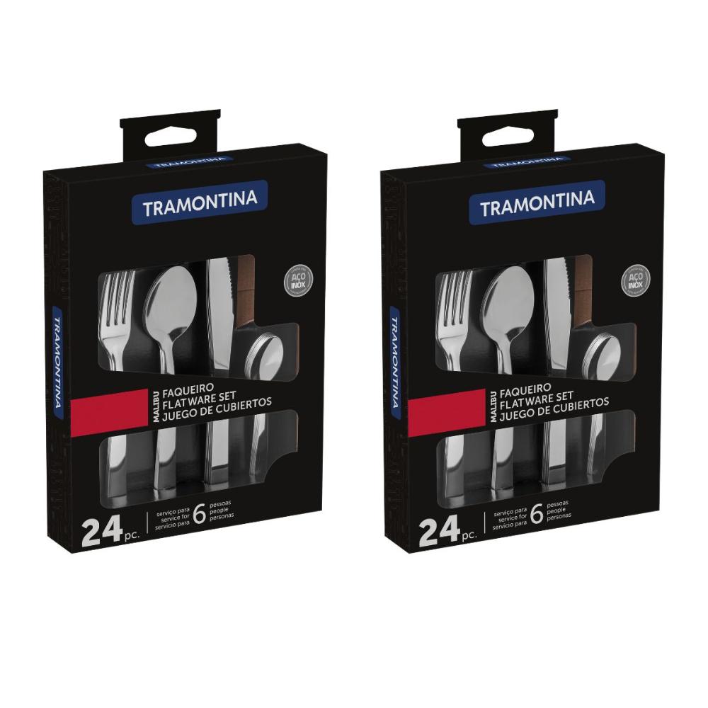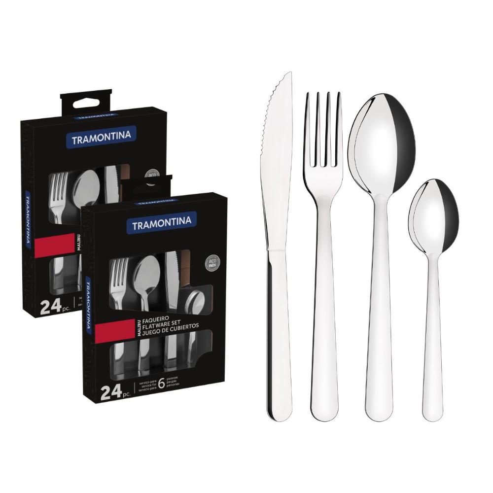 Faqueiro Aço Inox Malibu 48 Peças Tramontina Impressione seus convidados com o faqueiro Tramontina Malibu em aço inox 48 peças! Um faqueiro totalmente produzido em aço inox que oferece durabilidade e resistência, além de deixar sua mesa muito mais elegante e cheia de estilo, pois suas peças contam com um acabamento que tornam o talher ainda mais especial. Muito fáceis de limpar, os talheres ainda podem ir à máquina de lavar louças. A companhia ideal para as refeições do seu dia! Descrição do produto:Marca: TramontinaLinha: MalibuTalheres produzidos em aço inox que mantém a beleza, a higiene e a durabilidade.Lâminas das facas com maior durabilidade do fio devido ao tratamento térmico.Garfos e colheres que garantem maior resistência devido a espessura do aço e a estampagem das lâminas.Podem ir à máquina de lavar louças facilitando seu dia a dia.Conteúdo do Faqueiro: 12 colheres de mesa, 12 colheres de chá, 12 facas para churrasco, 12 garfos de mesa. Imagens meramente ilustrativas, todos os itens que ambientam o produto não estão inclusos.