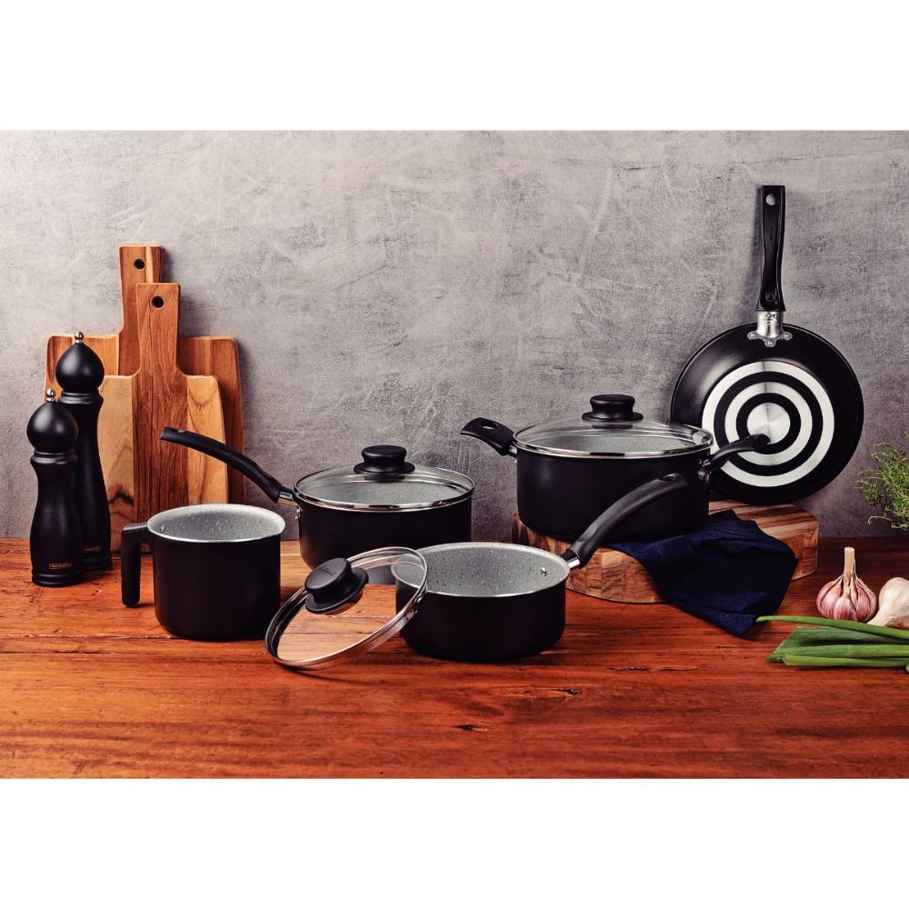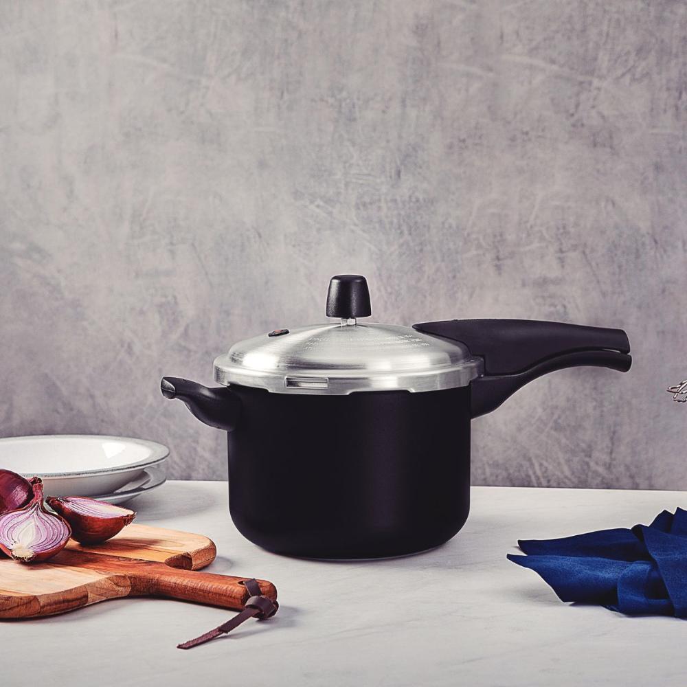 Jogo de Panelas 6 Peças com Panela Pressão TramontinaSeja qual for a receita que você vai preparar, é essencial contar com itens de qualidade, como o jogo de panelas Tramontina Turim e a Panela de Pressão Vancouver em alumínio com revestimento interno e externo em antiaderente Starflon Max. Aptas para uso no dia a dia, suas peças garantem maior segurança e facilidade na hora preparar suas refeições, pois contam com cabos, alças e pegadores em baquelite e nylon e vem com tampas de vidro temperado com borda de aço inox. Você ainda cozinha de maneira rápida e uniforme, sem que os alimentos grudem em sua superfície e tem facilidade na limpeza, pois o corpo das peças tem produção em alumínio com revestimento em antiaderente Starflon Max. Escolha Tramontina e deixe suas tarefas na cozinha, ainda melhores! Descrição: Linha Comercial: Turim e Vancouver.Quantidade: 6 Peças.Revestimento Interno: Antiaderente Starflon Max.Material: Alumínio com espessura de 1,2 mm que proporciona cozimento rápido e uniforme. Podem ir à máquina de lavar louças.Tipo de Fogão: Gás, Elétrico, Vitrocerâmico - resistência elétrica.ATENÇÃO: Não compatível com fogão de indução.Conteúdo:1 - Frigideira 20 cm 0,8 L Turim Preta1 - Caçarola 20 cm 2,8 L Turim Preta1 - Panela 16 cm 1,4 L Turim Preta1 - Panela 18 cm 2,0 L Turim Preta1 - Fervedor 12 cm 1,1 L Turim Preto1 - Panela de Pressão com tampa escovada 20cm 4,5L Vancouver Preta Imagens meramente ilustrativas, todos os itens que ambientam o produto não estão inclusos.