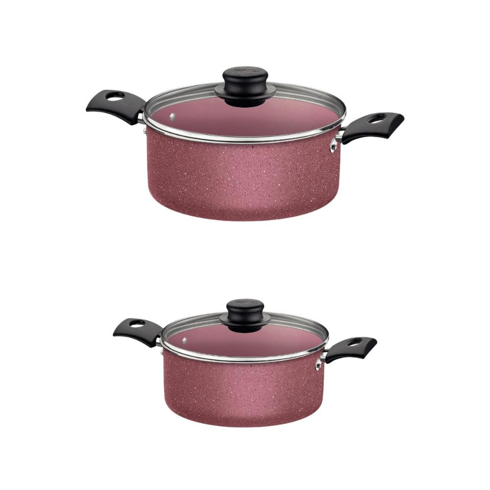 Jogo de Panelas 11 Peças com Panela Pressão TramontinaSeja qual for a receita que você vai preparar, é essencial contar com itens de qualidade, como o jogo de panelas Tramontina Turim e a Panela de Pressão Vancouver em alumínio com revestimento interno e externo em antiaderente Starflon Max. Aptas para uso no dia a dia, suas peças garantem maior segurança e facilidade na hora preparar suas refeições, pois contam com cabos, alças e pegadores em baquelite e nylon e vem com tampas de vidro temperado com borda de aço inox. Você ainda cozinha de maneira rápida e uniforme, sem que os alimentos grudem em sua superfície e tem facilidade na limpeza, pois o corpo das peças tem produção em alumínio com revestimento em antiaderente Starflon Max. Escolha Tramontina e deixe suas tarefas na cozinha, ainda melhores! Descrição: Linha Comercial: Turim e Vancouver.Quantidade: 11 Peças.Revestimento Interno: Antiaderente Starflon Max.Material: Alumínio com espessura de 1,2 mm que proporciona cozimento rápido e uniforme. Podem ir à máquina de lavar louças.Tipo de Fogão: Gás, Elétrico, Vitrocerâmico - resistência elétrica.ATENÇÃO: Não compatível com fogão de indução.Conteúdo:1 - Frigideira 16 cm 0,4 L Turim Rosa1 - Frigideira 20 cm 0,8 L Turim Rosa1 - Panquequeira/ Tapioqueira 22 cm 0,6 L Turim Rosa1 - Caçarola 18 cm 2 L Turim Rosa1 - Caçarola 20 cm 2,8 L Turim Rosa1 - Panela 14 cm 0,8 L Turim Rosa1 - Panela 16 cm 1,4 L Turim Rosa1 - Fervedor 12 cm 1,1 L Turim Rosa1 - Assadeira Rasa 28 cm 2 L Brasil Rosa1 - Assadeira Redonda 22 cm 1,7 L Brasil Rosa1 - Panela de Pressão com tampa escovada 20cm 4,5L Vancouver Preta Imagens meramente ilustrativas, todos os itens que ambientam o produto não estão inclusos.