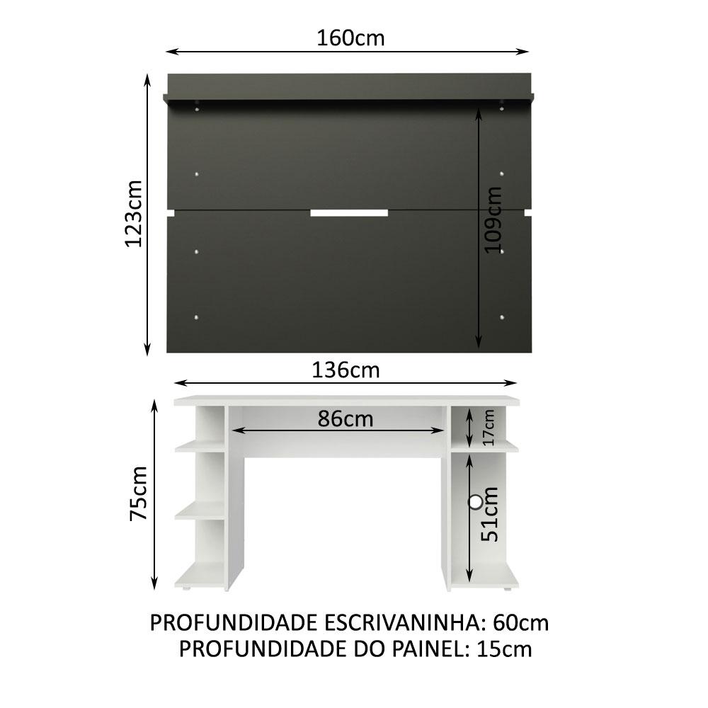 Mesa para Computador Gamer e Painel TV Madesa - Branco/Preto
