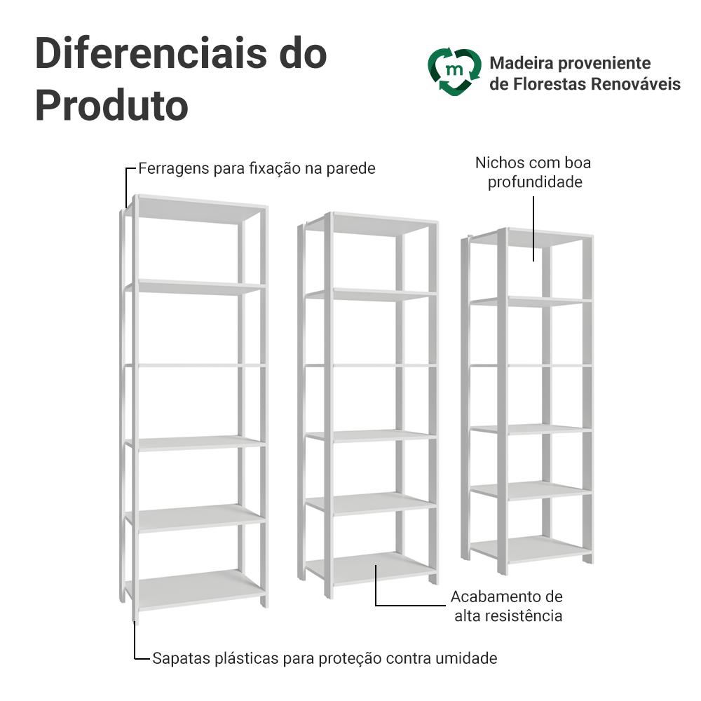 Transforme seu ambiente com esta Estante Armário Multiuso, perfeita para quem busca otimizar o espaço e melhorar a organização. O design aberto da estante oferece fácil acesso aos seus objetos, permitindo uma organização prática e eficiente.Composta por três módulos, cada um com cinco prateleiras, esse móvel oferece amplo armazenamento para livros, objetos decorativos e outros itens, proporcionando praticidade no dia a dia.Além disso, o móvel possui um acabamento de alta resistência, pés com sapatas plásticas que oferecem proteção contra a umidade e ferragens inclusas para fixação na parede, assegurando maior estabilidade e segurança.Medidas totais:- 180 cm de altura- 177 cm de largura- 45 cm de profundidadeO que você recebe:- Três Estantes Multiuso de 59 cm de largura com cinco prateleiras em cadaCódigo do produto:XMMDES03000209XMMDES0300027KÉ importante saber:- Imagens meramente ilustrativas, a decoração não acompanha o produto.- A Madesa não oferece serviço de montagem.- O produto segue com manual e todas as ferragens necessárias para a instalação.- Por segurança, é obrigatório fixar o móvel na parede.A Madesa se dedica à sustentabilidade com várias iniciativas: temos uma usina própria que gera energia para uma das fábricas. Priorizamos fornecedores responsáveis com o meio ambiente. Todo o plástico utilizado na produção é reciclado, e as sobras também são reaproveitadas. Investimos no desenvolvimento de nossos colaboradores e em ações que beneficiem a comunidade.