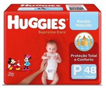 O que é e para que serve a Fralda Huggies Supreme Care P? Huggies Supreme Care tamanho P foi projetada especialmente para recém-nascidos. A fralda oferece alta proteção e conforto para a pele dos bebês nessa fase, com barreiras que ajudam a evitar vazamentos para as pernas. É desenvolvida com materiais específicos para absorver melhor o cocô líquido. Com camada externa suave e produzida em materiais respiráveis, a Huggies Supreme Care tamanho P protege o bebê sem causar desconforto. É dermatologicamente comprovada. Características: Pacote com 48 unidades. Tamanho: P (3,5 - 6kg). Projetada para recém-nascidos. Benefícios e diferenciais da Fralda Huggies Supreme Care P Projetada especialmente para recém-nascidos. Com absorção especial para cocô líquido. Produzida com materiais respiráveis. É suave por dentro e por fora, como um algodão. Possui barreiras antivazamento, que evitam o vazamento do xixi para as pernas. Fechos elásticos ajustáveis e macios, com o sistema abre e fecha. Mais proteção, conforto e flexibilidade para o bebê. Com personagens da Disney. Como usar a Fralda Huggies Supreme Care? Abra a fralda e os fechos ajustáveis traseiros e levante as barreiras. Coloque o bebê e verifique se a fralda está cobrindo suas costas até a cintura. Descole os fechos ajustáveis, fixe-os sobre a faixa frontal da fralda e regule de acordo com o corpinho do bebê. Ajuste o elástico das pernas para garantir que não dobre por cima das barreiras internas. Para descartar as fraldas utilizadas: enrole a fralda e prenda-a, utilizando os fechos ajustáveis. Descarte no lixo, nunca no vaso sanitário. Atenção Use como referência as ilustrações na faixa frontal. Caso os fechos estejam fixados no símbolo "!", considere rever o tamanho. Composição Celulose, polímero superabsorvente, polipropileno, polietileno, elásticos, adesivos, aloe vera e vitamina E. Não contém fibras de algodão. Componentes atóxicos não propensos a causar irritação em contato com a pele. A lista de ingredientes usados na composição pode ser alterada pelo fabricante. Desta forma, recomendamos que você sempre leia a lista de ingredientes na embalagem do produto para garantir que são adequados para seu uso. Advertências Uso externo. Mantenha fora do alcance das crianças. Se houver irritação, suspenda o uso imediatamente e procure orientação médica. Descarte após usar. Não descarte no vaso sanitário. Tabela de Medidas Fraldas Huggies Supreme Care Tamanho Idade do bebê Peso Fraldas por dia RN 0 - 21 dias Até 4 Kg 7 P 3 a 8 semanas 3,5 a 6 Kg 7 M 2 a 8 meses 5,5 a 9,5 Kg 6 G 8 a 17 meses 9 a 12,5 Kg 5 XG 17 a 26 meses 12 a 15 Kg 4 XXG Mais de 26 meses Acima de 14 Kg 4