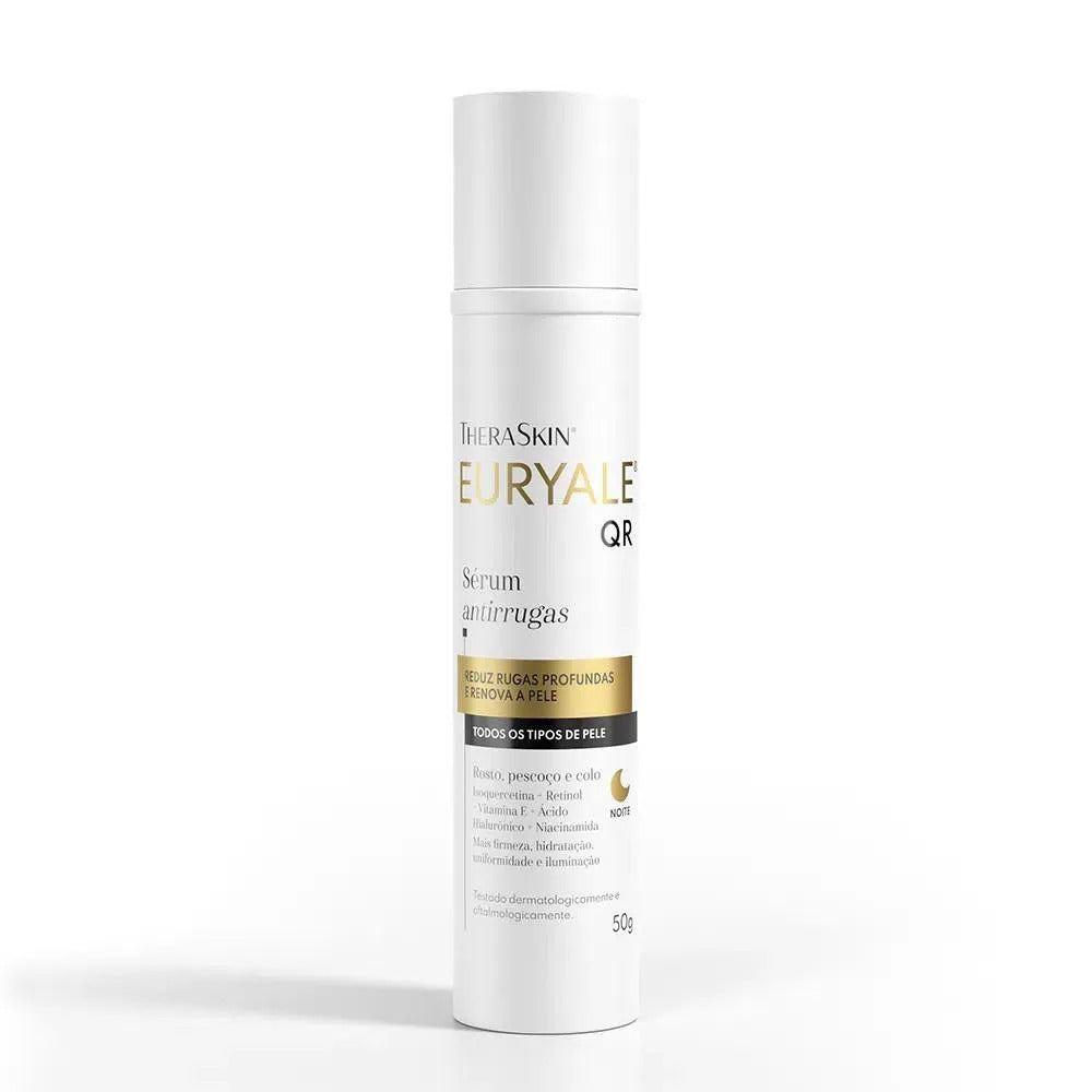 Para Que Serve:Euryale® QR tem um sistema anti-idade multifuncional que combina a isoquercetina, vitamina e, nicotinamida e dois tipos de ácido hialurônico de alto e baixo peso molecular. Sua fórmula é enriquecida com microcápsulas de retinol estabilizado que estimulam a renovação celular e o aumento da produção de colágeno. O novo sistema “age complex qr” proporciona ação antioxidante potencializada e completa, protege o colágeno e redefine a estrutura da pele, bloquea os mecanismos do envelhecimento e deixa a pele mais hidratada e rejuvenescida. Euryale® QR pode ser utilizado em todos os tipos de pele, incluindo as mais sensíveis.Modo de Usar:Aplicar sobre a face, colo e pescoço, com movimentos suaves, uma vez à noite, pelo menos 30 minutos antes de se deitar. Pela manhã, lavar o rosto, colo e pescoço com sabonete neutro de sua preferência, após a lavagem, aplicar o filtro solar em toda a área.
