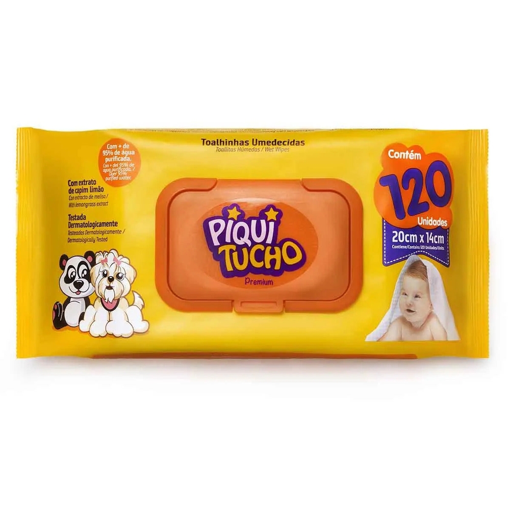 Para Que Serve:O que é e para que serve o Lenço Umedecido Piquitucho Premium? Desenvolvidas especialmente para a higiene diária da pele delicada do bebê, as toalhinhas umedecidas Piquitucho Premium são formuladas com ingredientes suaves como Manteiga de Karité, extratos de Capim Limão e Aloe Vera, que proporcionam um toque macio e uma limpeza delicada e eficaz. Sua fragrância conta com tecnologia exclusiva que apresenta ingredientes que remetem a uma sensação de conforto e suavidade, ajudando a preparar o bebê para uma tranquila noite de sono. Como usar a Toalha Umedecida Piquitucho Premium? Abra a tampa flip top e levante a etiqueta autoadesiva no local indicado. Retire a toalhinha puxando pelo centro. Após o uso descarte a toalhinha no lixo. Mantenha sempre a tampa flip top fechada entre um uso e outro para conservar a umidade do produto. Advertências Uso externo. Não ingerir. Deve ser aplicado por adulto ou sob sua supervisão. Não usar na pele irritada ou lesionada. Em caso de irritação, suspender o uso e procurar um médico. Mantenha o produto fora do alcance das crianças. Mantenha em local fresco, arejado, protegido da luz solar direta e dentro da embalagem original fechada. Descarte após usar. Não descarte no vaso sanitário.