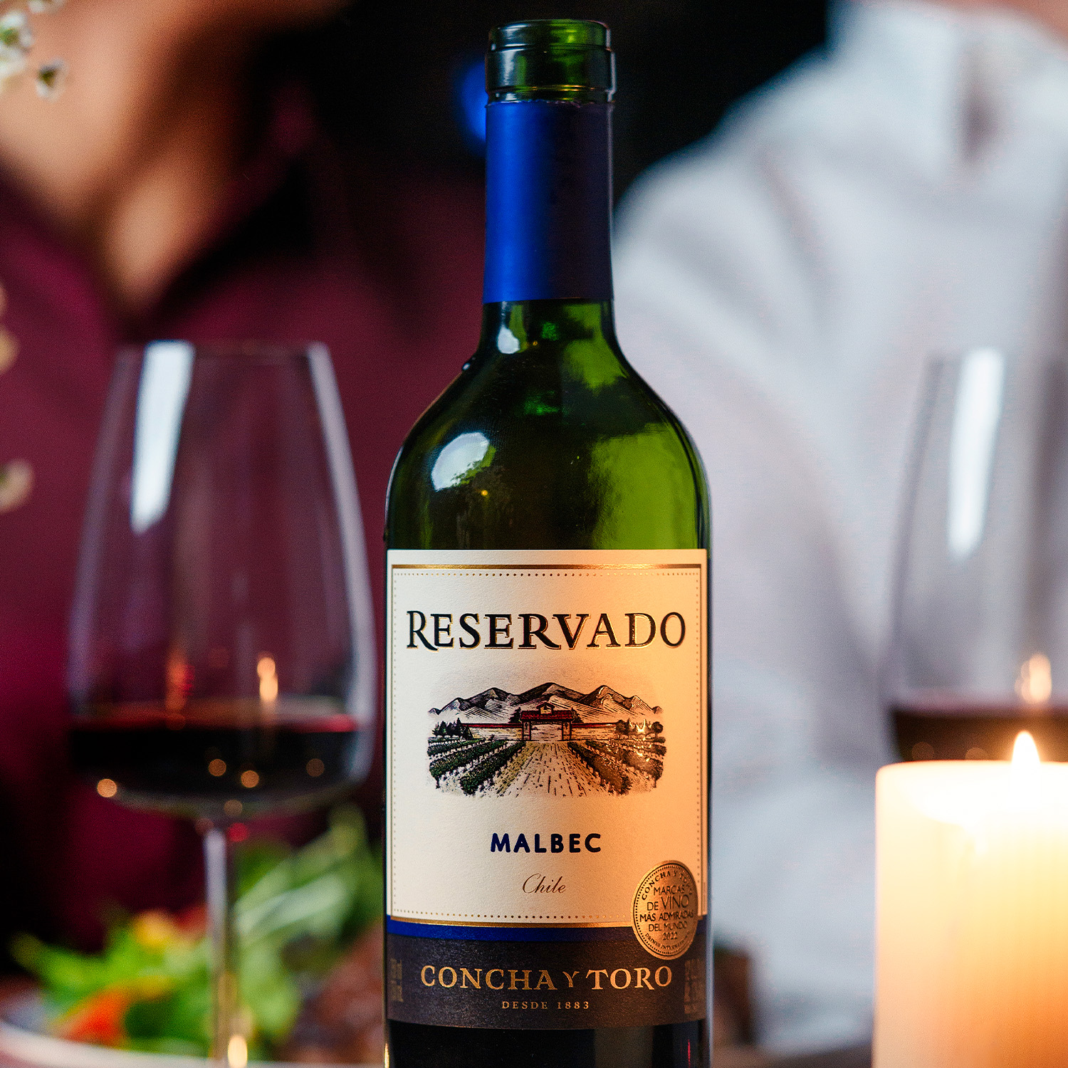Para todos os momentos Concha y ToroEste Vinho Chileno Reservado Malbec da Concha y Toro destaca-se pela cor intensa, aromas envolventes e equilíbrio perfeito entre fruta e complexidade no paladar.Visual vermelho intenso.Cor vibrante com reflexos violetas, que reforça a personalidade marcante do vinho.Aromas de frutas e café.Combinação elegante de frutas do bosque com notas suaves de café tostado.Paladar equilibrado e redondo.Taninos suaves e corpo médio que tornam a experiência aveludada e persistente.Perfeito com carnes assadas.Ideal para pratos como cordeiro com milho e bacon, harmonizando com sabores intensos.Qualidade que conquista.A linha Reservado da Concha y Toro oferece vinhos surpreendentes e versáteis com a assinatura de uma vinícola premiada.Características:- Aroma de frutas do bosque com notas suaves de café tostado- Harmoniza com pratos como cordeiro com milho e baconInformações Técnicas:- Volume: 750 ml- Tipo de vinho: Tinto- Uva: Malbec- Origem: Chile