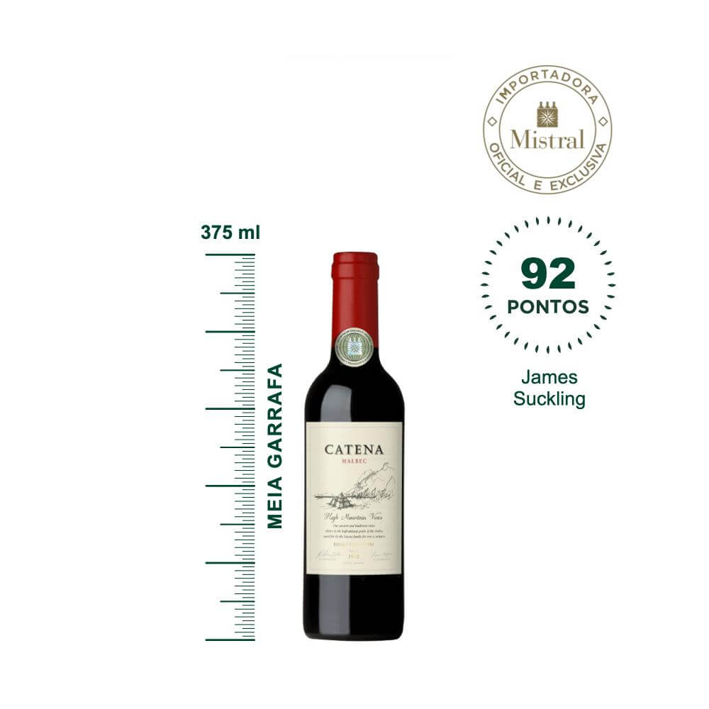 Eleito mais de uma vez um dos "100 Melhores Vinhos do Mundo" (safras 2002, 2007 e 2009) pela Wine Spectator, o Catena Malbec é uma referência absoluta! Intenso e concentrado como os grandes tintos argentinos, este Malbec mostra uma complexidade impressionante, raramente encontrada no continente. Este é o tinto que mostrou ao mundo o potencial da casta Malbec para originar vinhos de classe mundial. A safra 2022 conquistou 92 pontos de James Suckling e Robert Parker destacou seu palato "muito equilibrado, elegante e sutil, com taninos muito finos", além da excelente qualidade pelo que custa.Importador Exclusivo e Oficial: Mistral Importadora de Vinhos Ltda.Produtor do Vinho: Catena ZapataPaís: ArgentinaRegião: MendozaTipo: TintoUva: MalbecVolume: 375mlTeor alcoólico: 13,5Temperatura de Serviço: 14 a 16°CSugestão de guarda: De 5 a 10 anosCombinações enogastronômicas: Carnes em geral e massas.Vinhedo: Uvas provenientes de três vinhedos, sendo eles, Angelica, La Pirámide e Altamira. Rendimento controlado.Vinificação: Extensa maceração a frio durante 5 dias a 8ºC para extrair aromas. Fermentação por aproximadamente 10-16 dias com maceração pós-fermentativa de 19-22 dias. Leveduras selvagens.Maturação: Maturado por 11-13 meses em barril de carvalho francês. A seleção dos barris varia dependendo do vinhedo e da safra. Barris de primeiro, segundo e terceiro uso.Pontuado por James Suckling em 2022: 92Pontuado por Antonio Galloni em 2022: 92