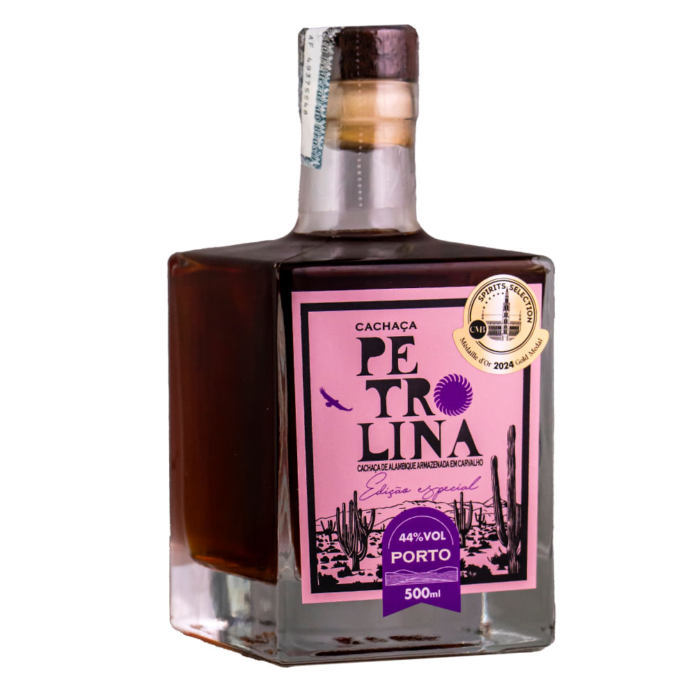 2024 - Medalha de ouro Spirits Selection 2024 em Bruxelas na Bélgica. A Cachaça Petrolina Edição Especial Ex Vinho do Porto é uma expressão máxima de sofisticação e exclusividade. Armazenada por 2 anos em barris de carvalho europeu que anteriormente envelheceram o renomado Vinho do Porto, ela passa por um processo único de maturação que confere complexidade, profundidade e elegância incomparáveis. Com 44% de graduação alcoólica, é uma verdadeira obra-prima para apreciadores exigentes.
