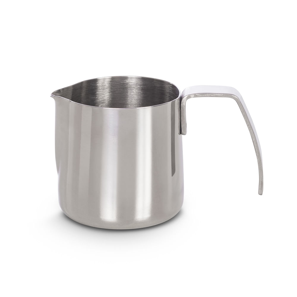 Produzida em aço inox de alta qualidade, oferece excelente acabamento e ótima durabilidade. Seu corpo levemente cônico e o fundo arredondado facilitam a vaporização e a homogeneização do leite.