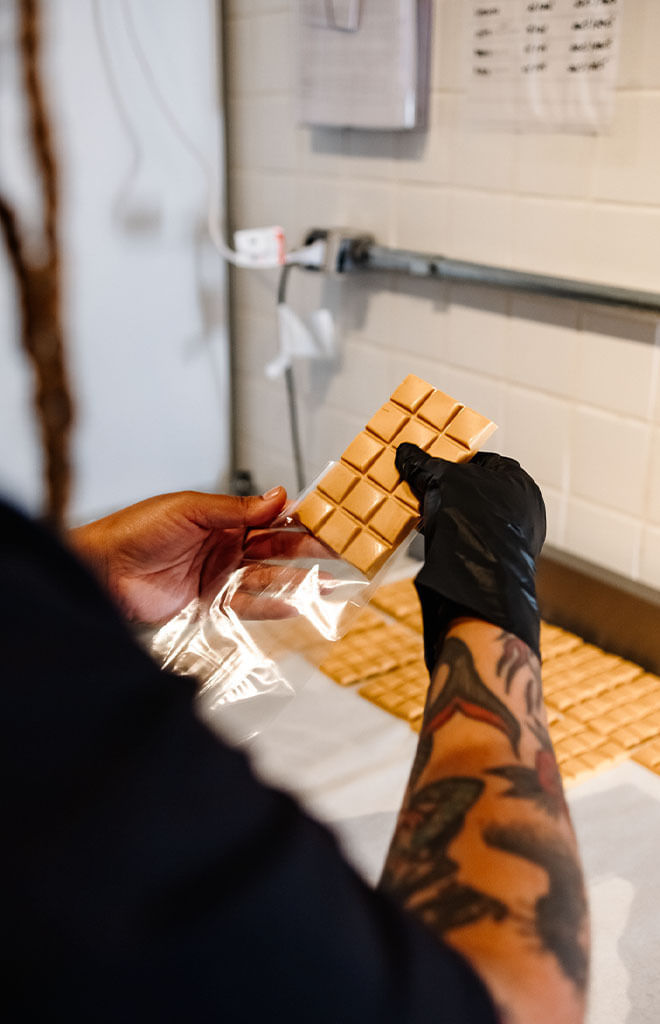 Com a artista de rua Dpaula, criamos uma barra de chocolate reconfortante e doce, porque o dia a dia já é bastante abrupto do jeito que é.