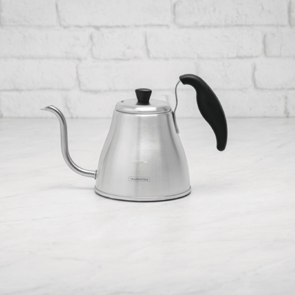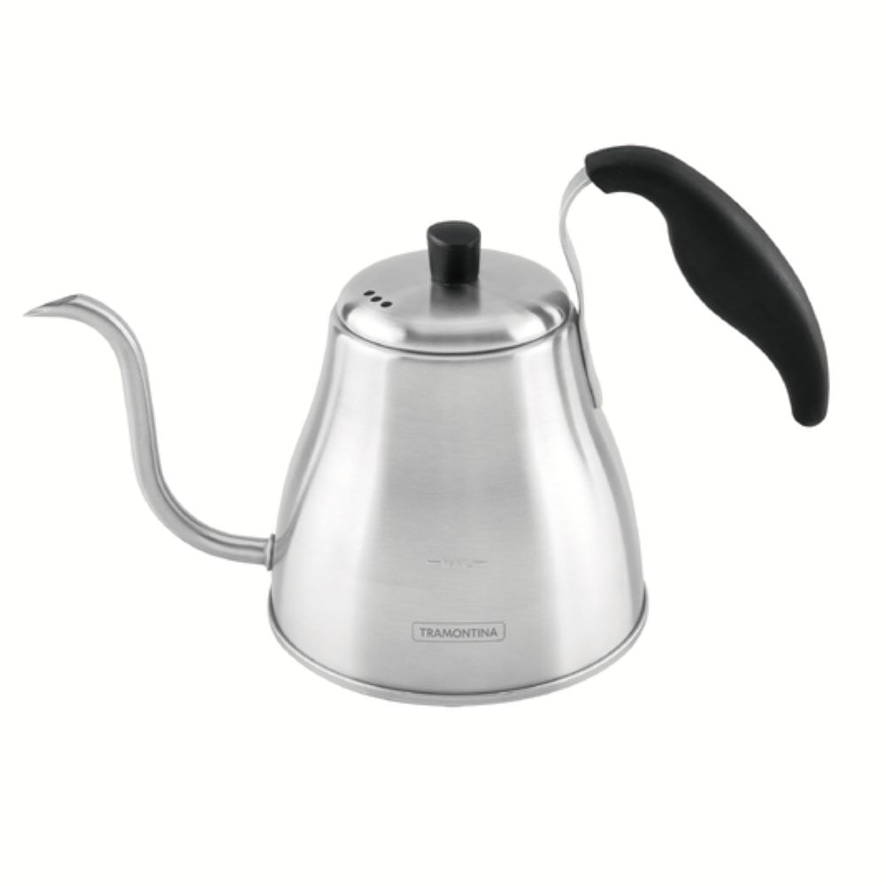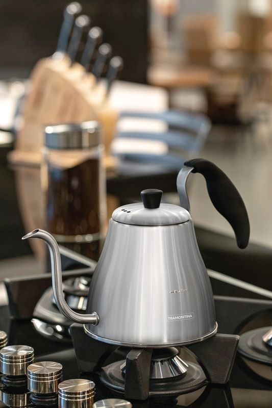 Ideal para preparar cafés com mais precisão, essa chaleira da Tramontina tem bico em pescoço de ganso, que garante um fluxo de água lento e controlado.